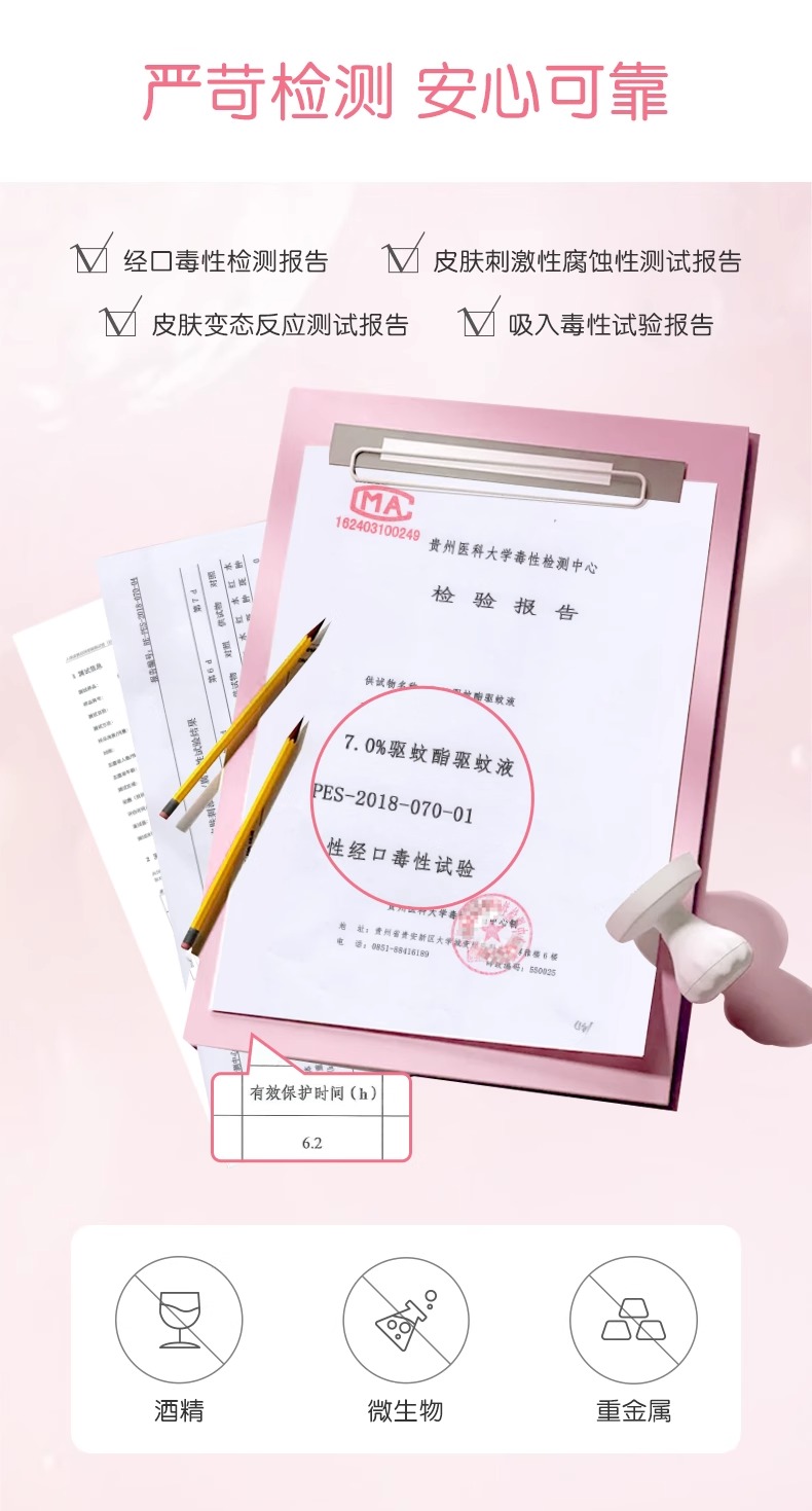 0酒精配方,经过严苛检测,温和驱蚊更安心!