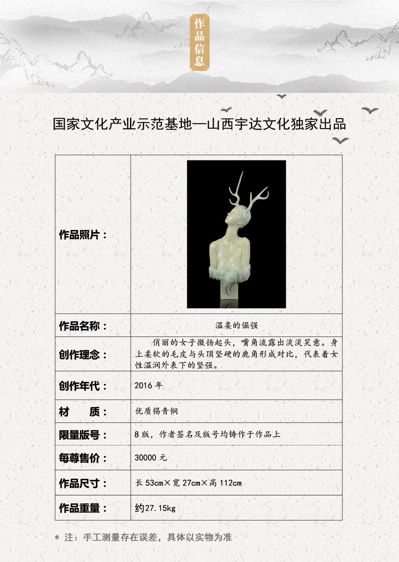 宇达青铜文化 司维作品《温柔的倔强》限量8版 家居艺术摆件 高112cm