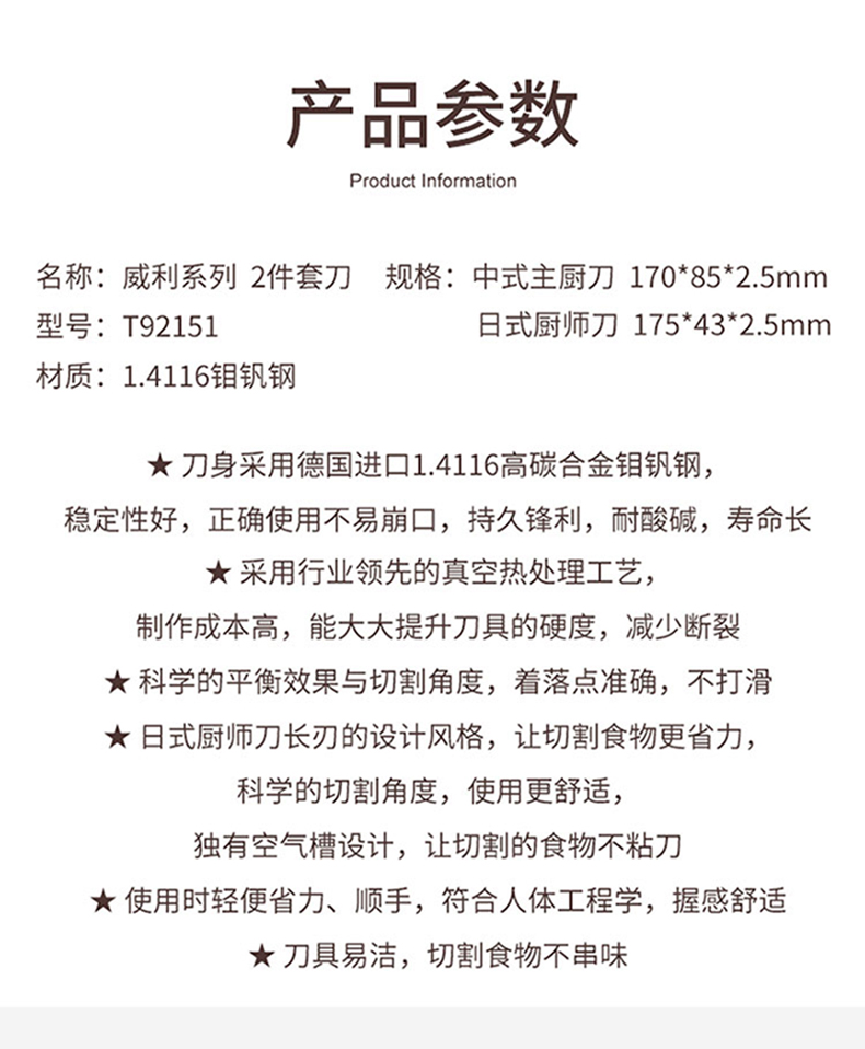 莱德斯威利2件套高碳合金钼钒钢刀具 【京东快递送货上门】