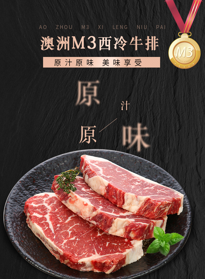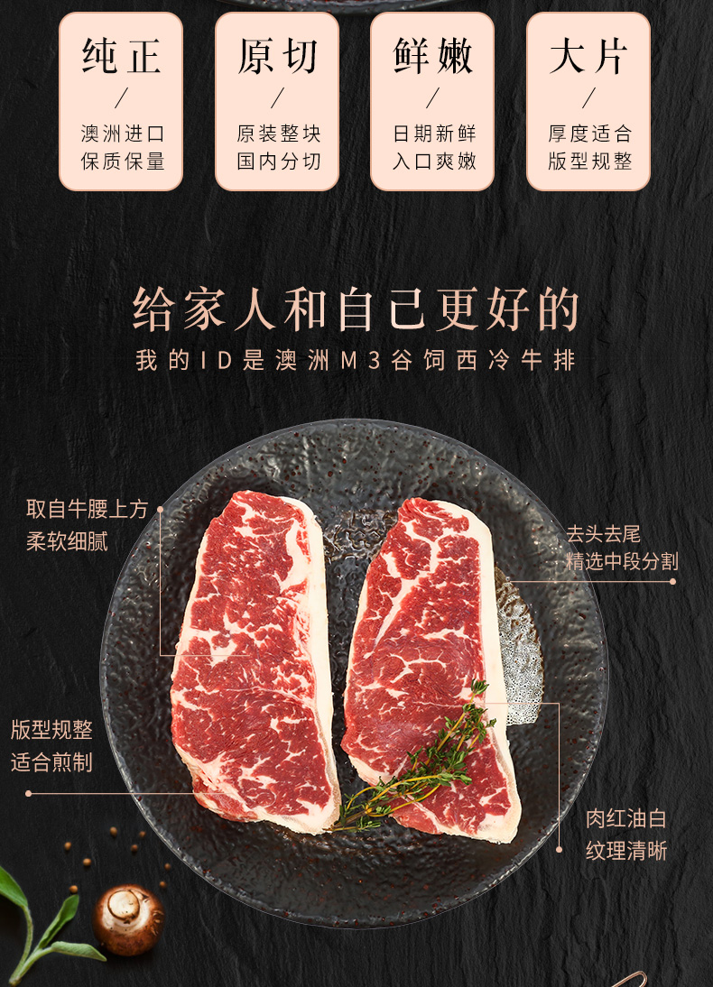 澳洲国家甄选(M3+)安格斯西冷牛排4份