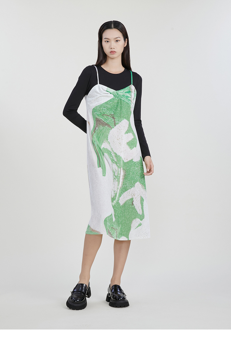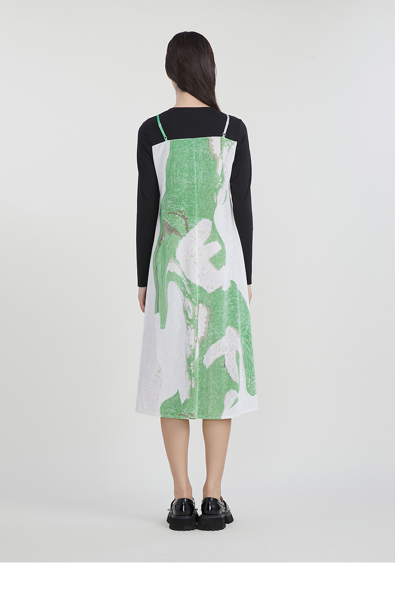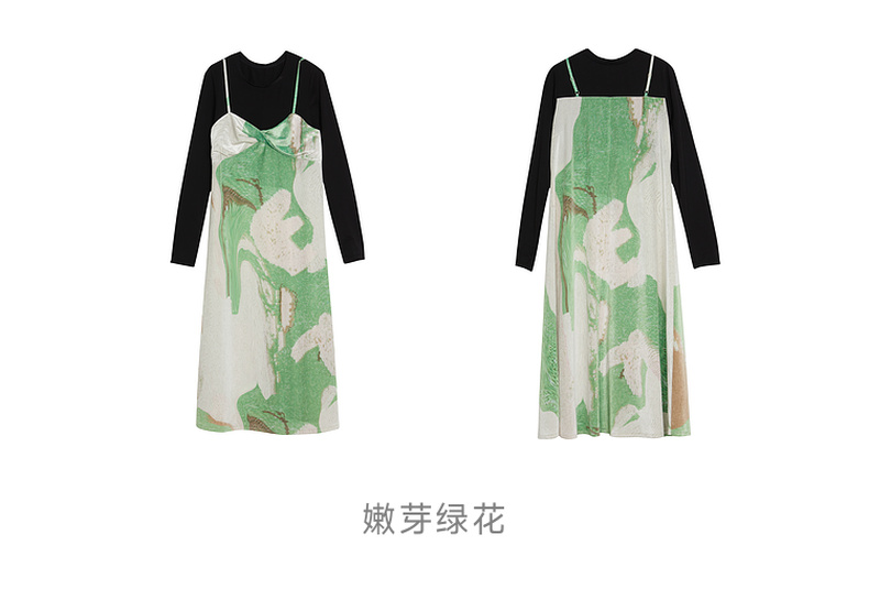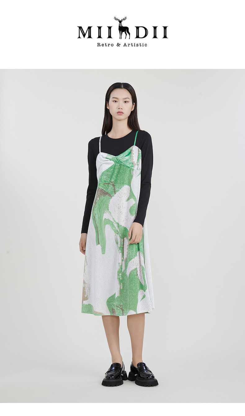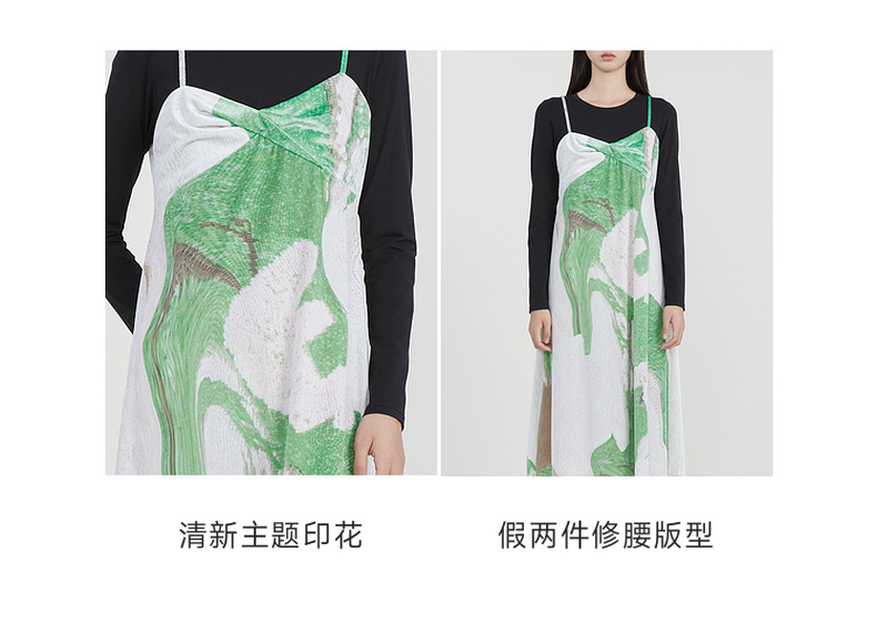 谜底连衣裙2023春季新款假两件胸衣设计收腰中长款A字裙231ML0124