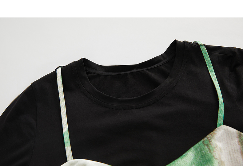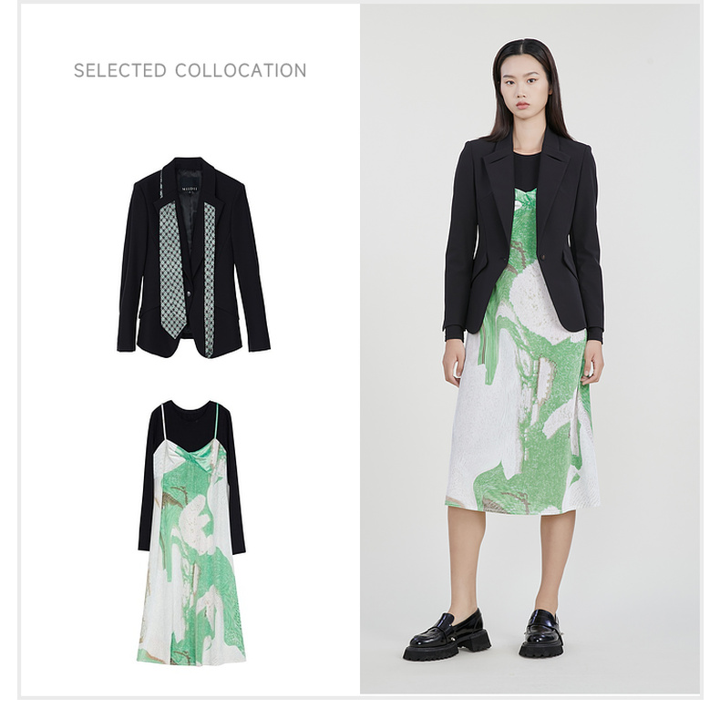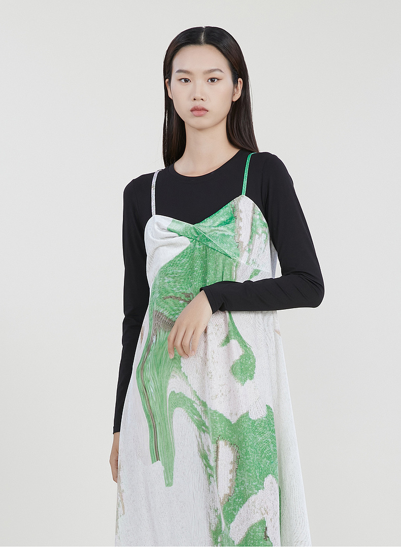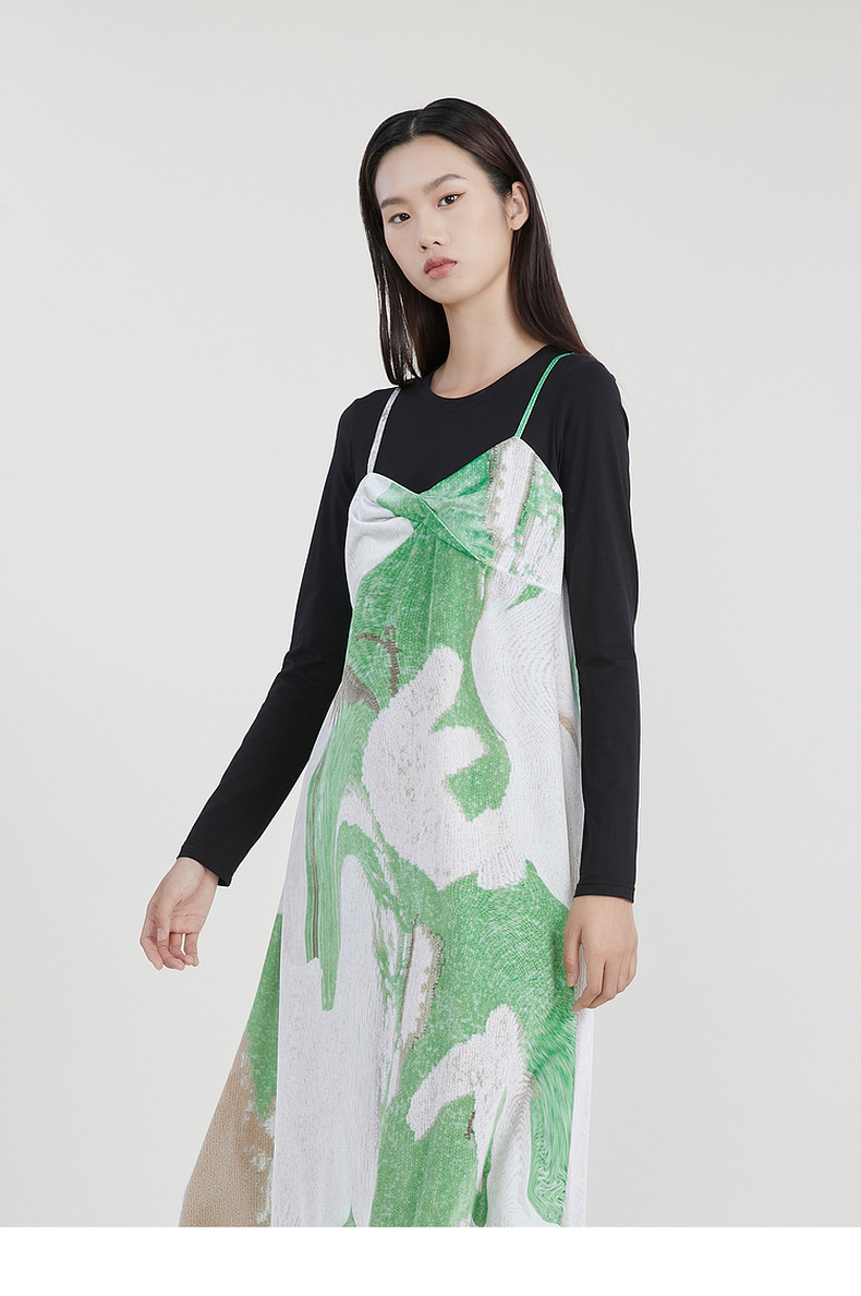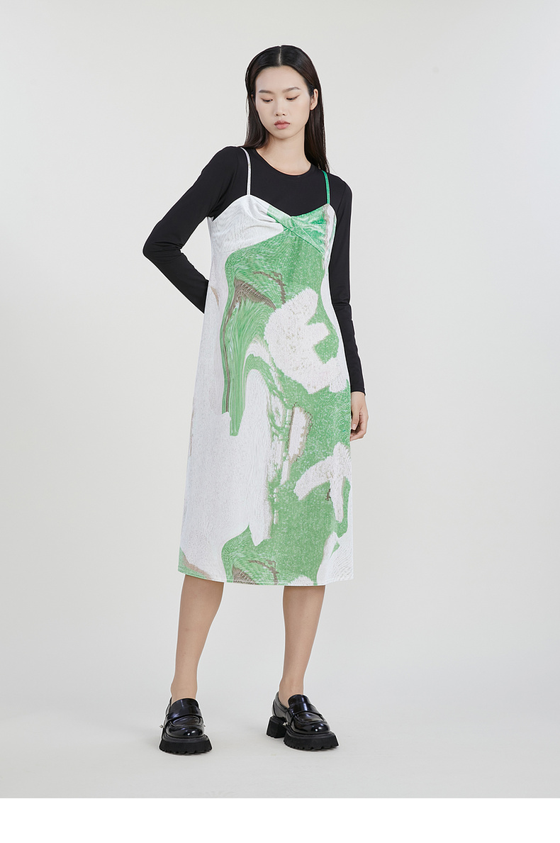 谜底连衣裙2023春季新款假两件胸衣设计收腰中长款A字裙231ML0124