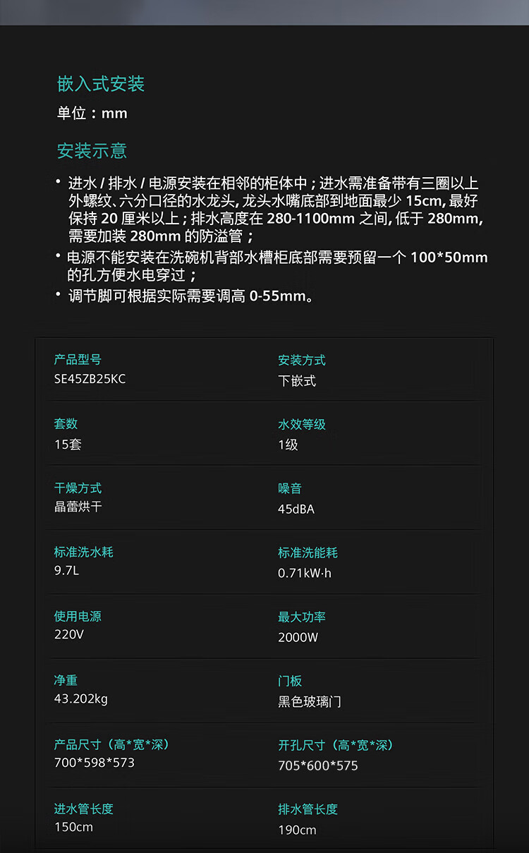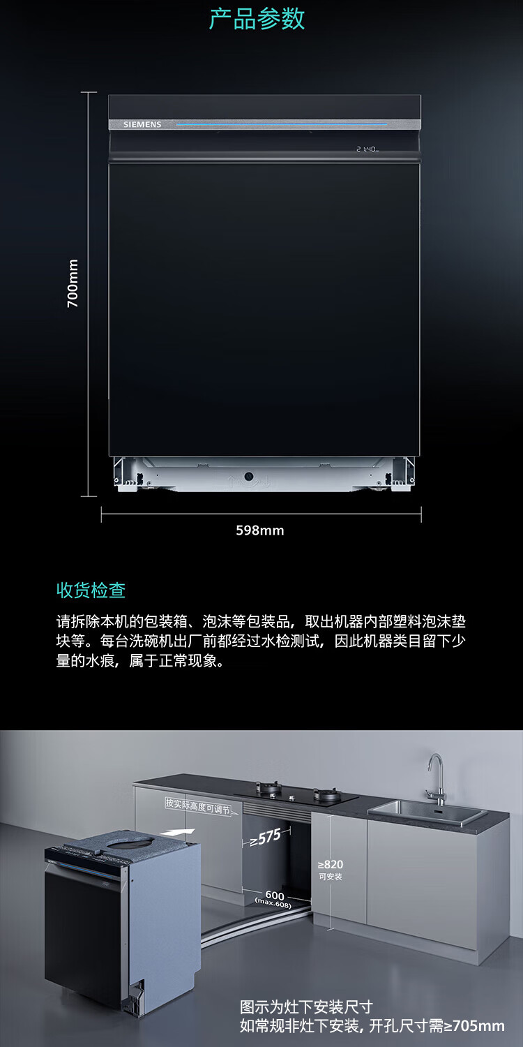 西门子(SIEMENS)【智净魔方】洗碗机灶下15套嵌入式 晶蕾烘干 700mm高度 240小时长效抑菌存 超五星级除菌 SE45ZB25KC