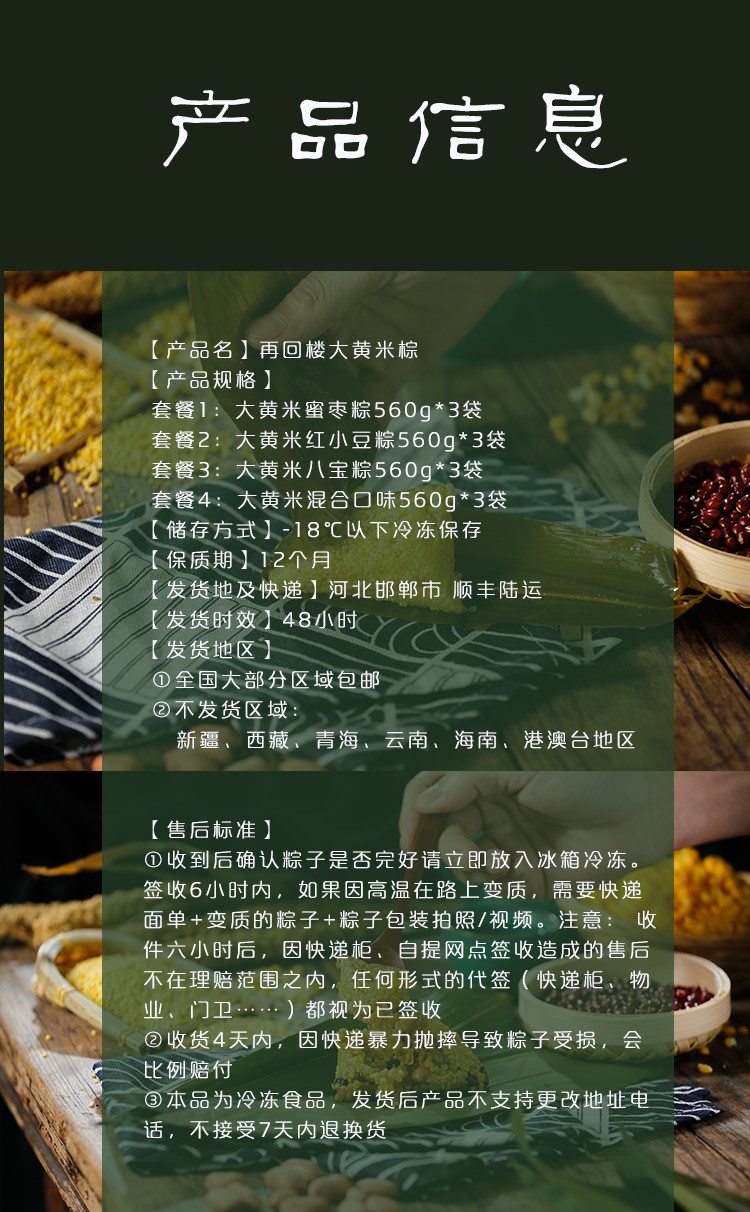 【已下市】再回楼大黄米粽子三袋21个组合装 甜粽蜜枣八宝粽红小豆粽软糯易消化 [福利品]
