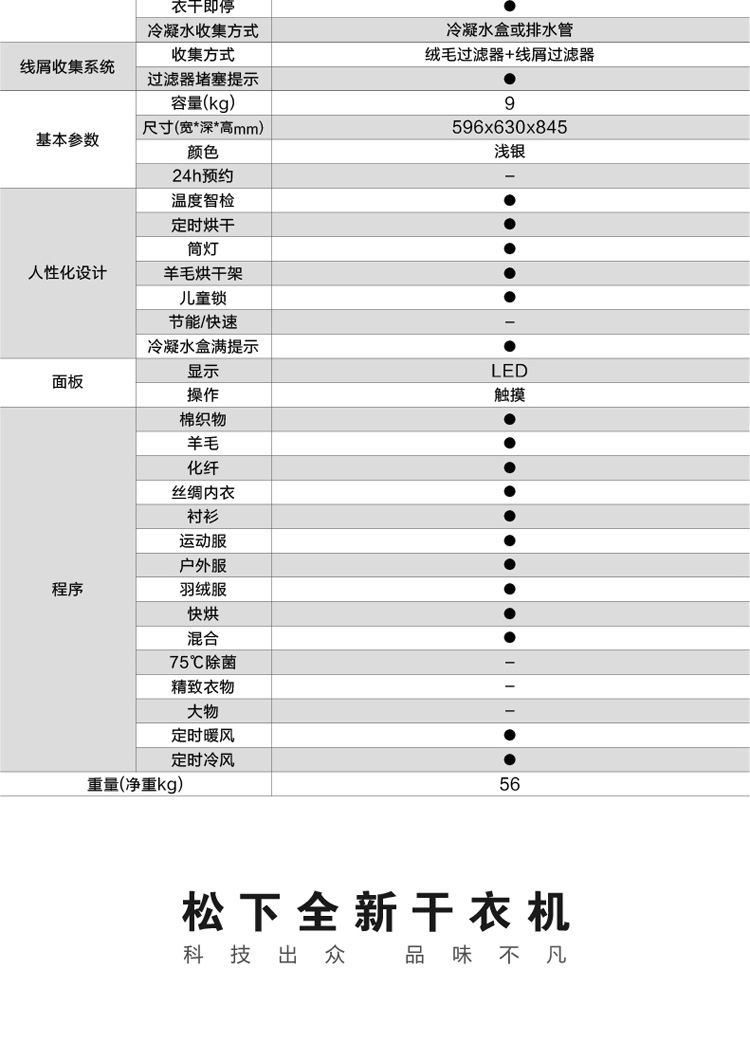 松下热泵干衣机 专衣专烘 智能干衣NH-EH900S