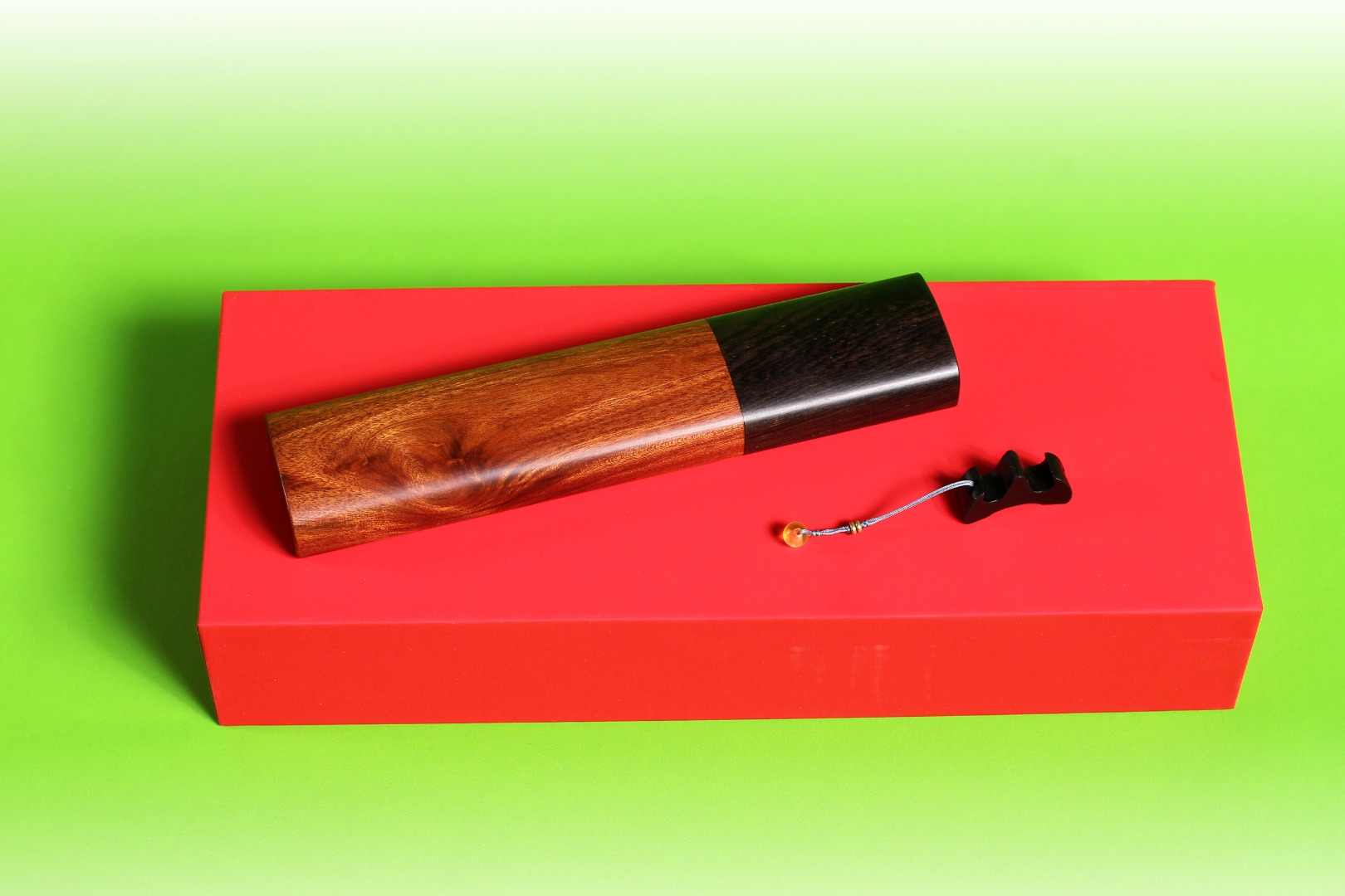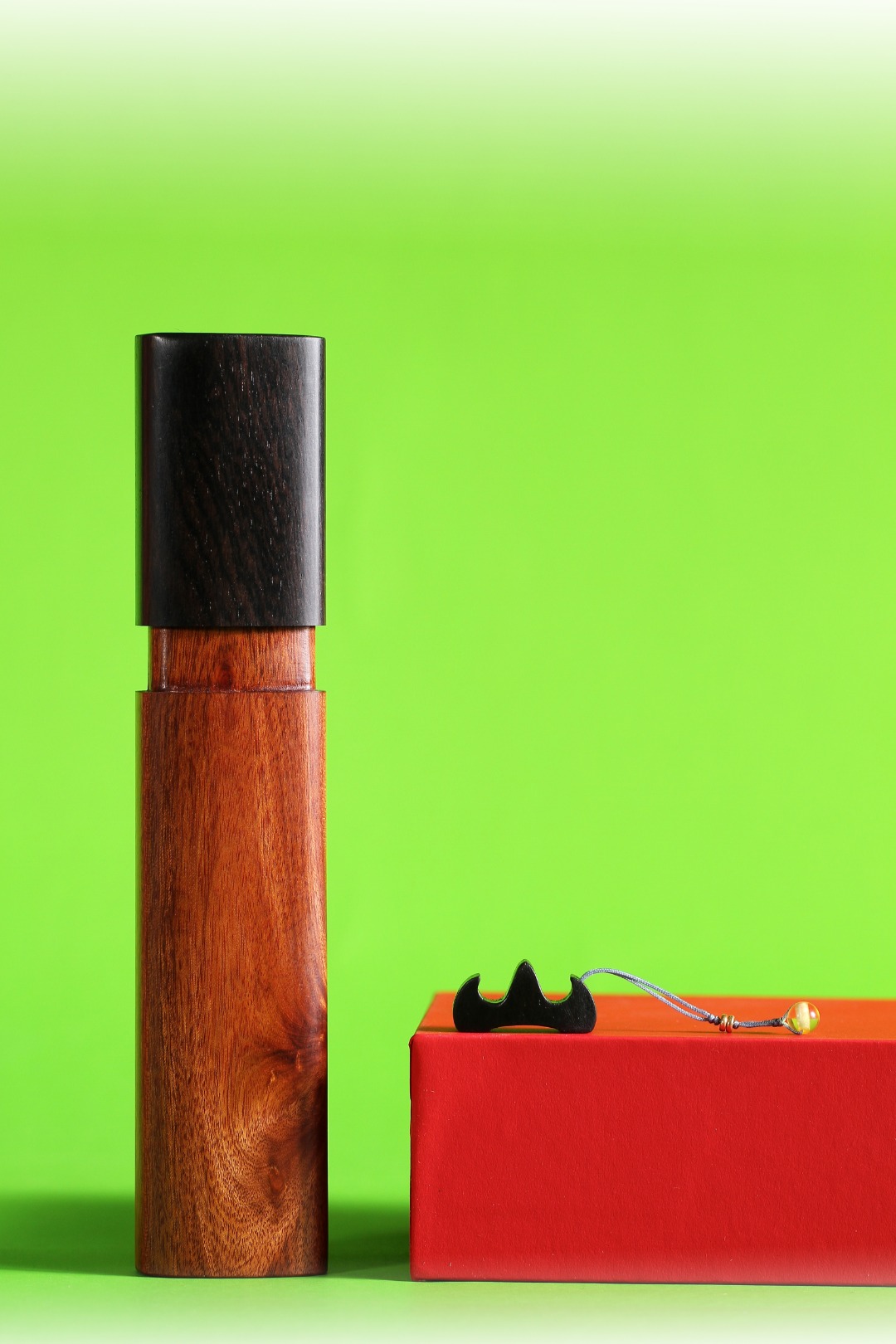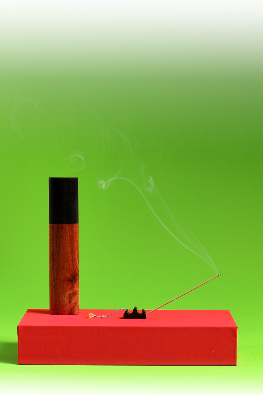 此香器由香管和香插组成,香管以紫光檀和非洲酸枝制作,双材配色,素简大方,弧度设计,密封性能好,香插则以紫光檀为材,以山为型,微小精细,层峦起伏,伴随屡屡青烟,高山仰止,心向往之。