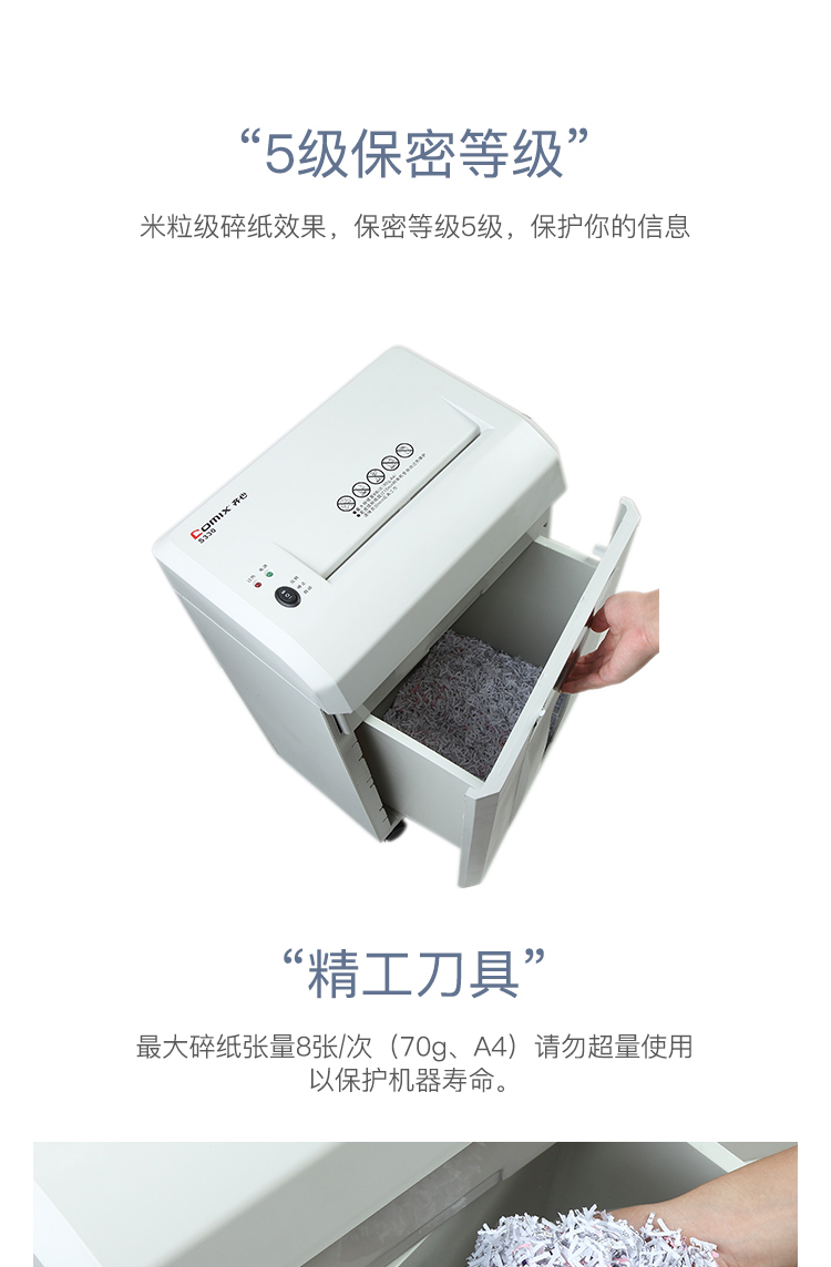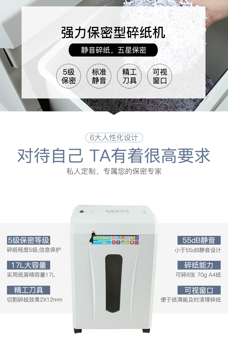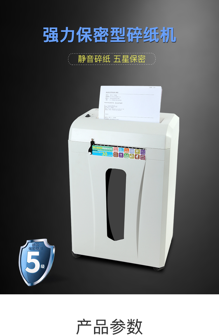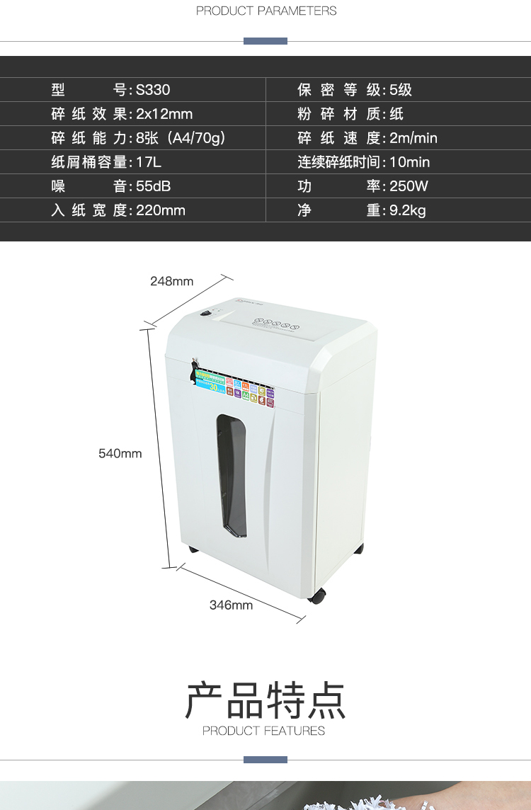 齐心 S330 强力保密型碎纸机 2×12mm/8张纸/17L/单入口/续航10min