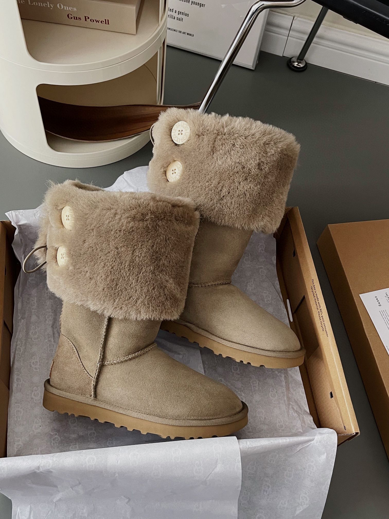 上新:Ugg小千颂伊两穿纽扣中筒靴~
