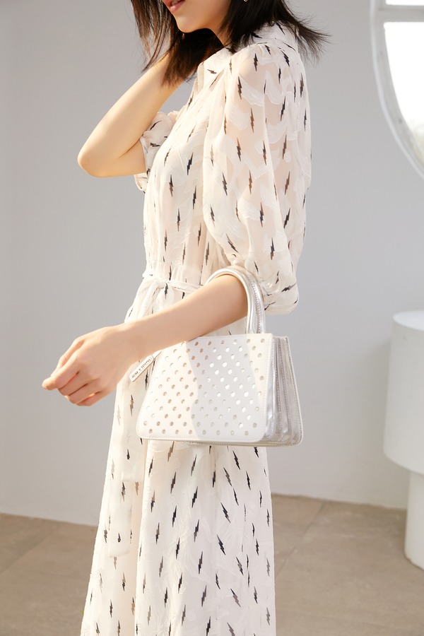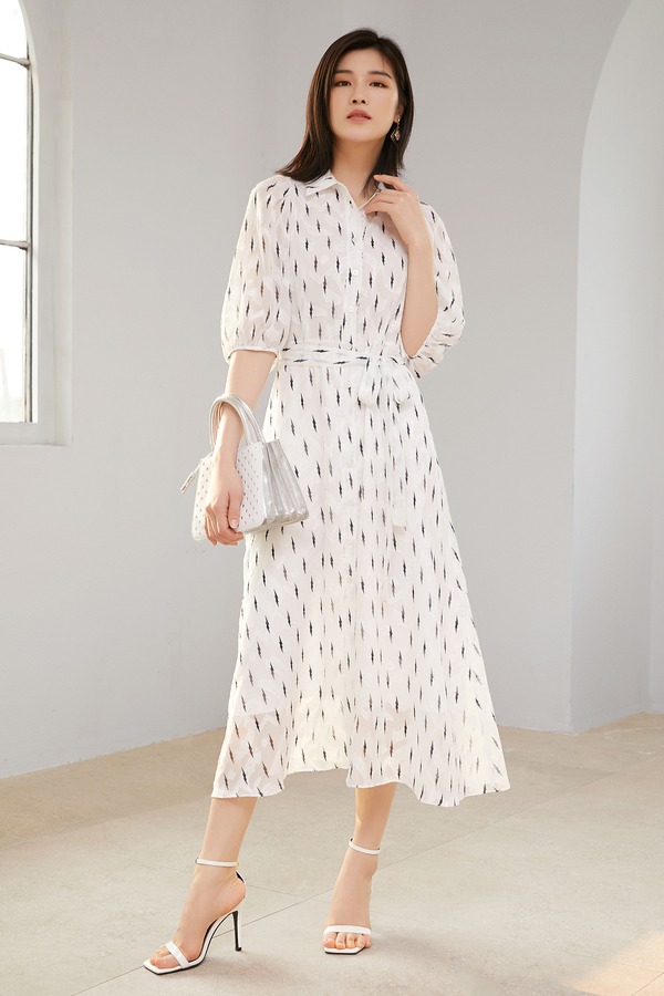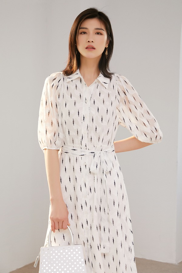 Le Malene 白色灯笼袖闪电图案连衣裙 13373