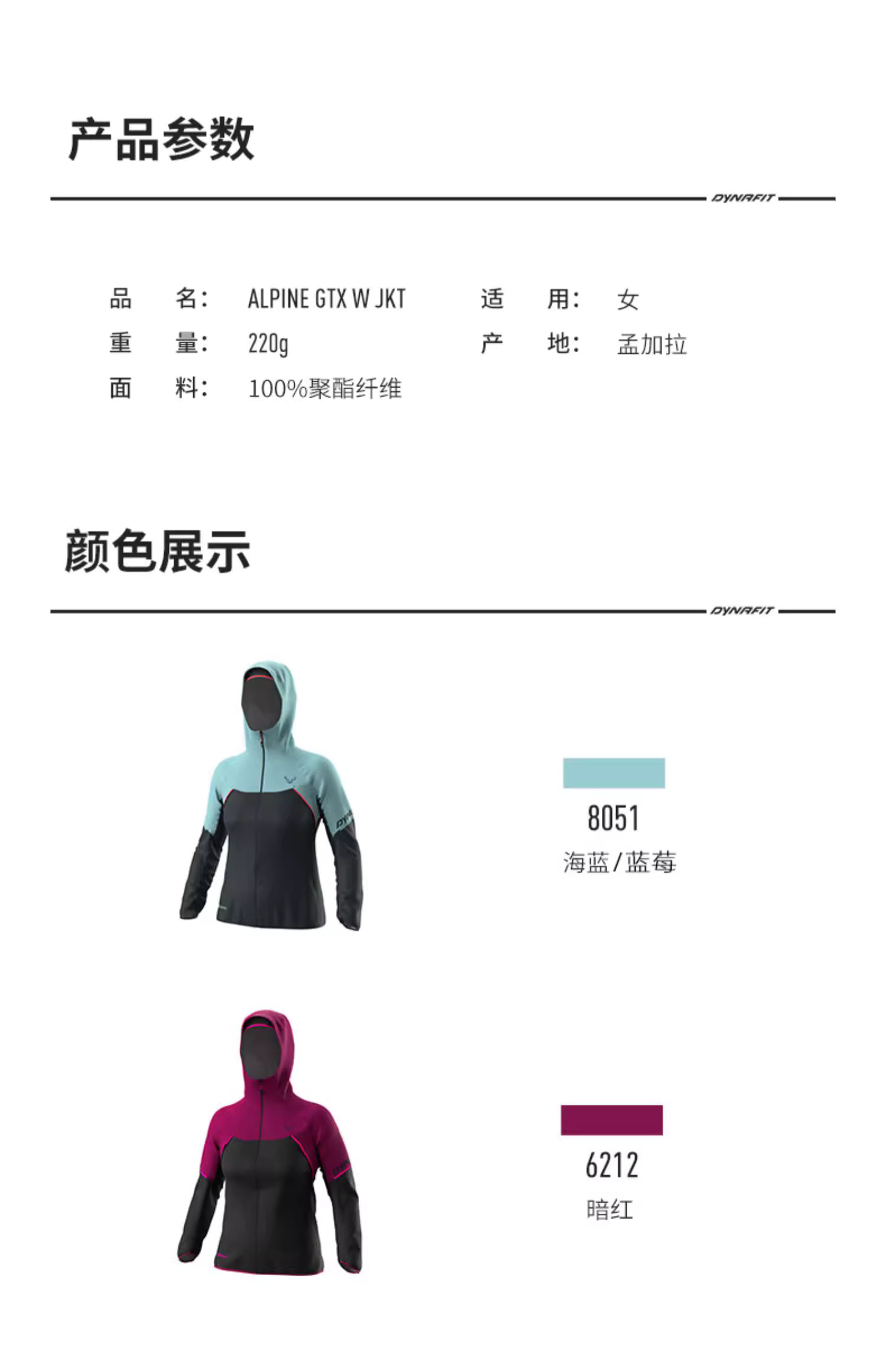 DYNAFIT 雪豹 女款 轻量防风透气 GORE-TEX 越野跑冲锋衣 71469