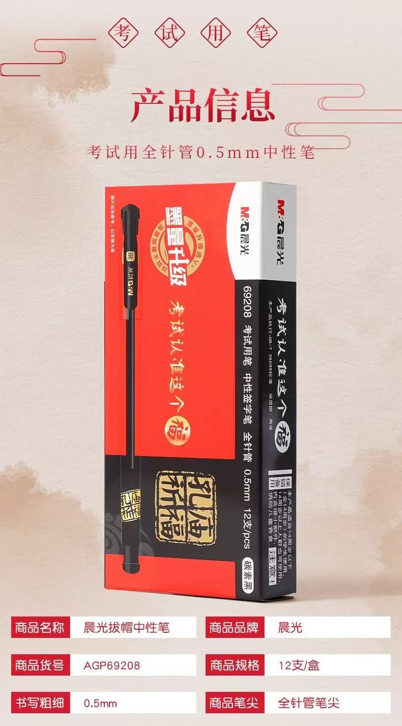 【升级款!考试必备神器📚】晨光碳素黑中性笔,顺滑书写助你稳拿高分✍️!晨光69208考试碳素黑中性笔 学生考试水笔 0.5mm笔芯黑色全针管学考试专用