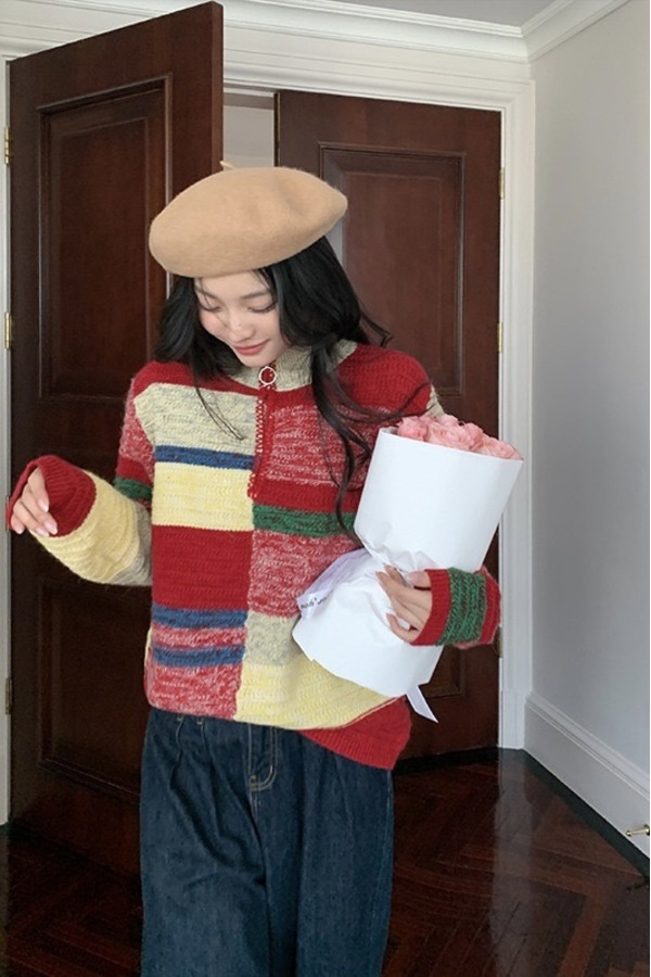 ANSUABEL 不规则彩色高领拉链针织 17798