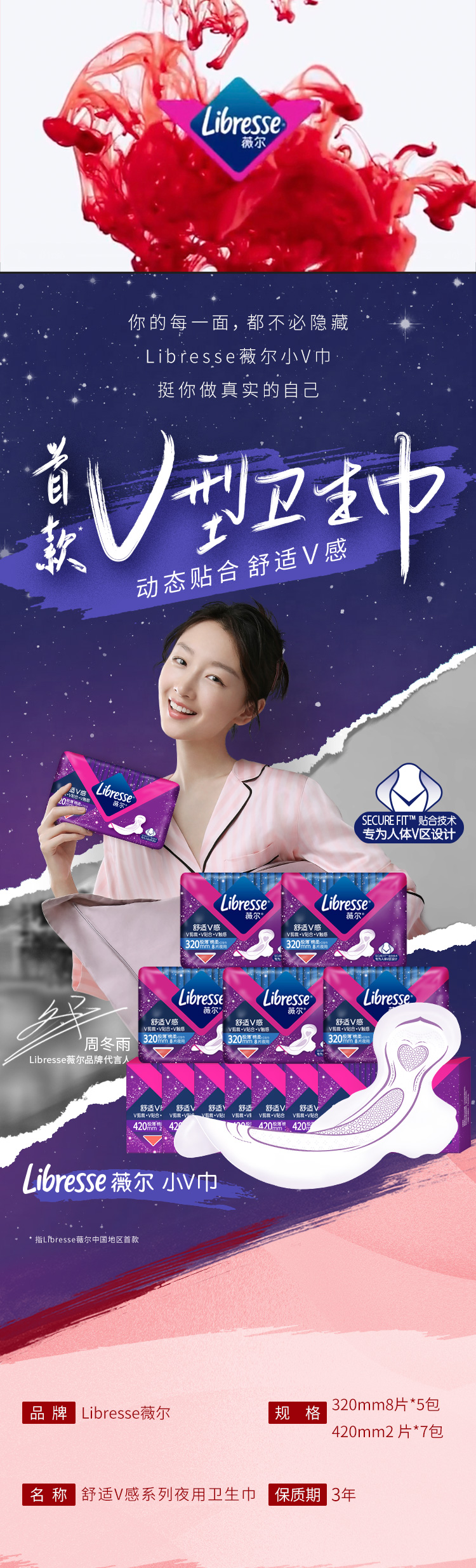 Libresse薇尔舒适V感320夜用40片420夜用17片共54片组套 极薄棉柔卫生巾
