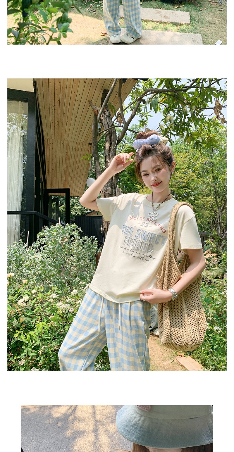 <曾小咸推荐> T恤+格子阔腿裤休闲套装 日常价189/套!活动价99/套!单件T恤59!单件阔腿裤79!【预售款,预计3-15天发货】