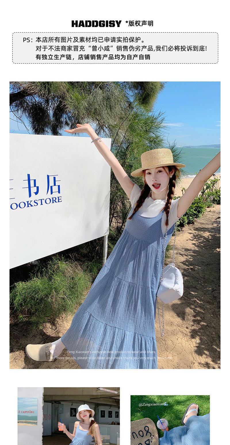 【折后再享2件88折】最后一波现货!韩系度假风蓝色吊带连衣裙 日常199.99/件 立减70 秒杀129.99/件!!