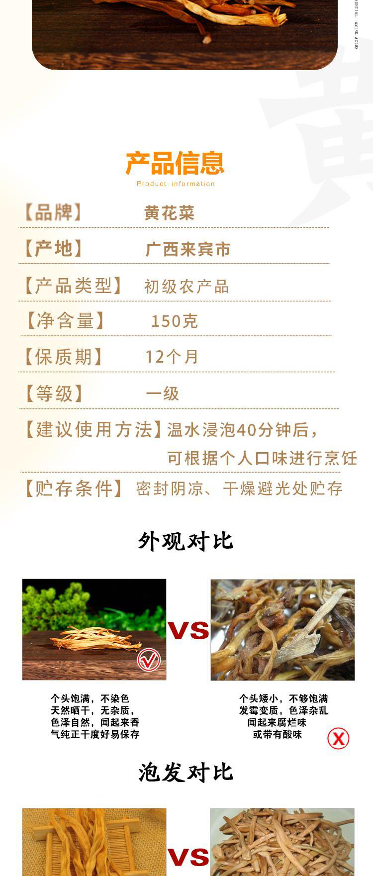 花家盛世 黄花菜150g/袋新鲜健康美味 HJSSGH006