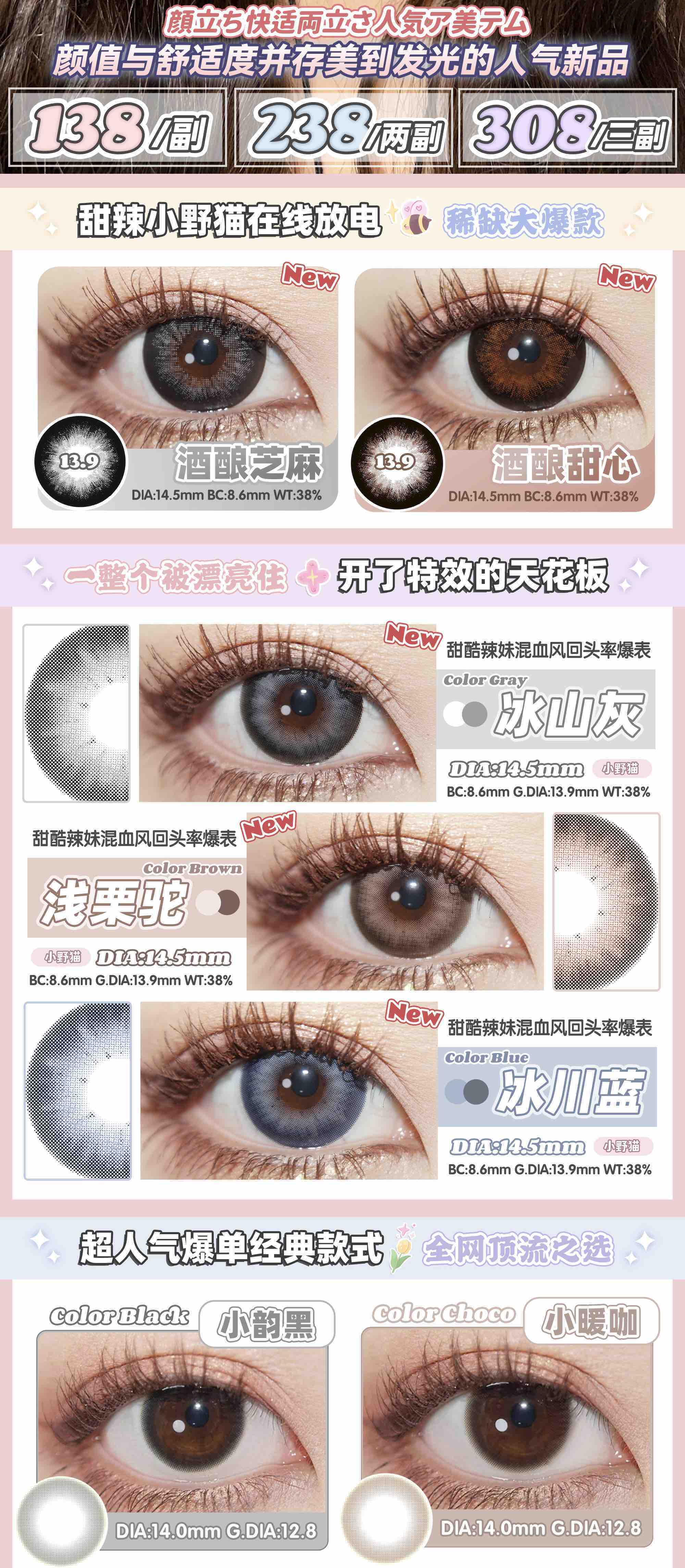 【年抛】酒酿芝麻 springcon | 大直径14.5 着色13.9 (同品牌多副更划算 选款完整色板在详情页)
