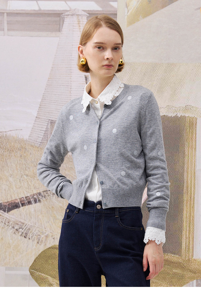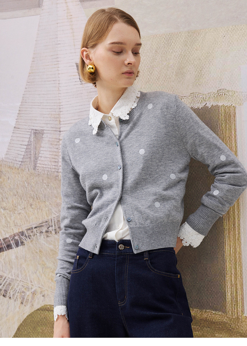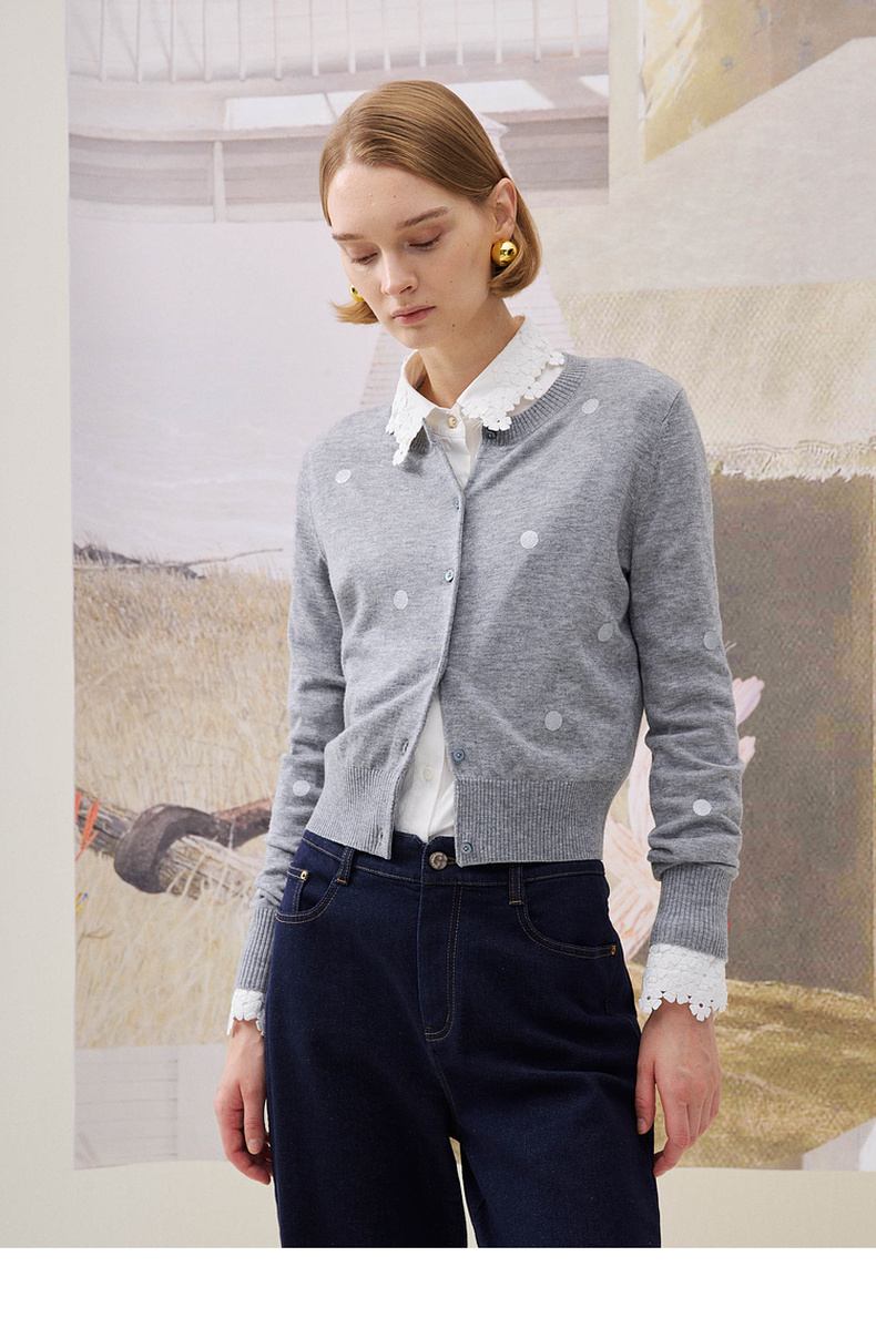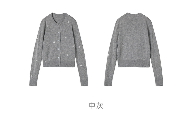 谜底针织开衫长袖2025冬季新品贝壳扣波点印花毛衣女254MZ1897