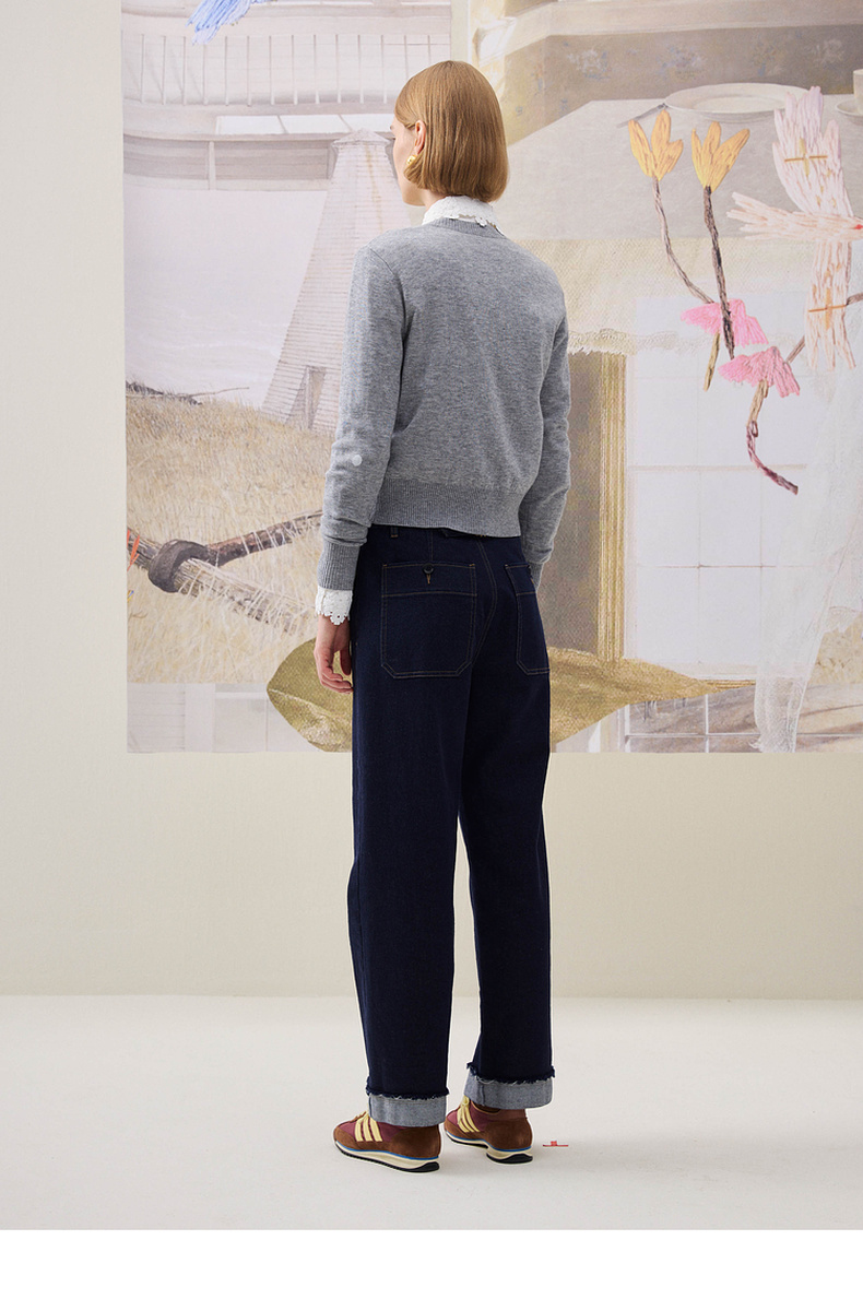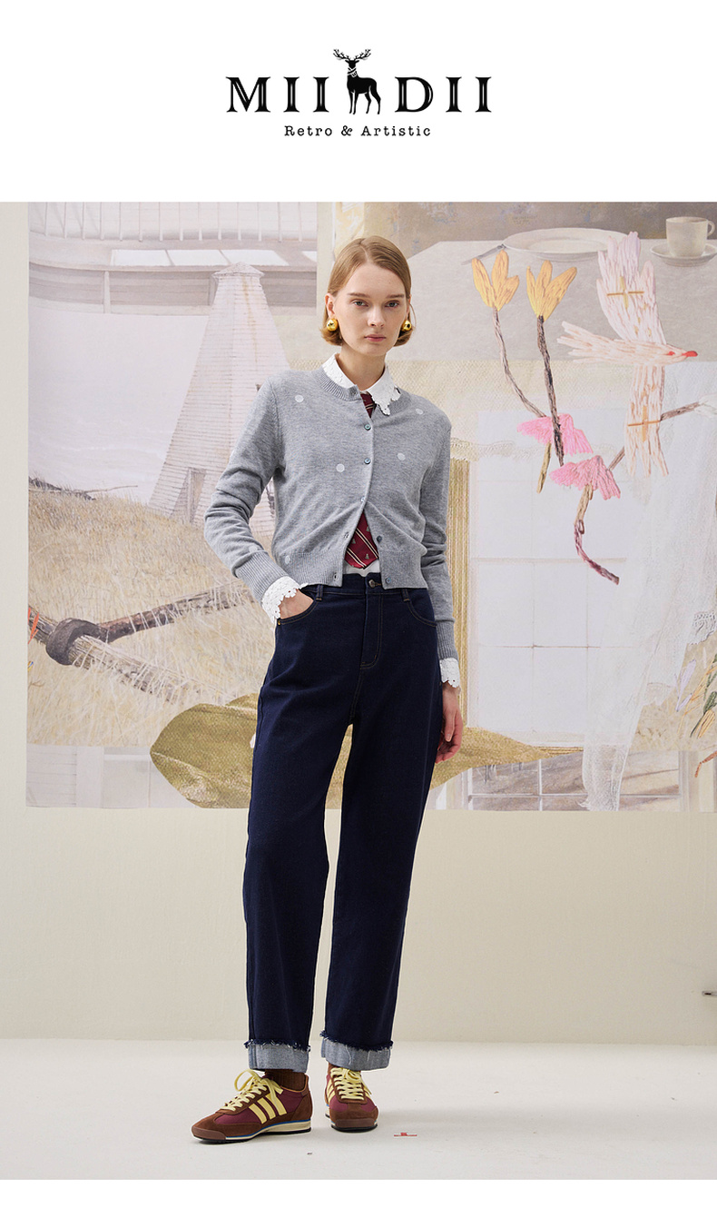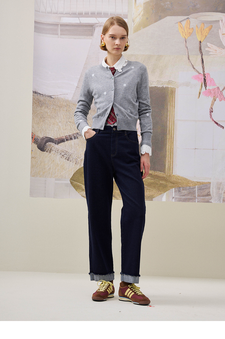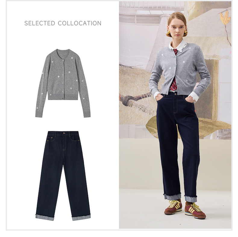 谜底针织开衫长袖2025冬季新品贝壳扣波点印花毛衣女254MZ1897
