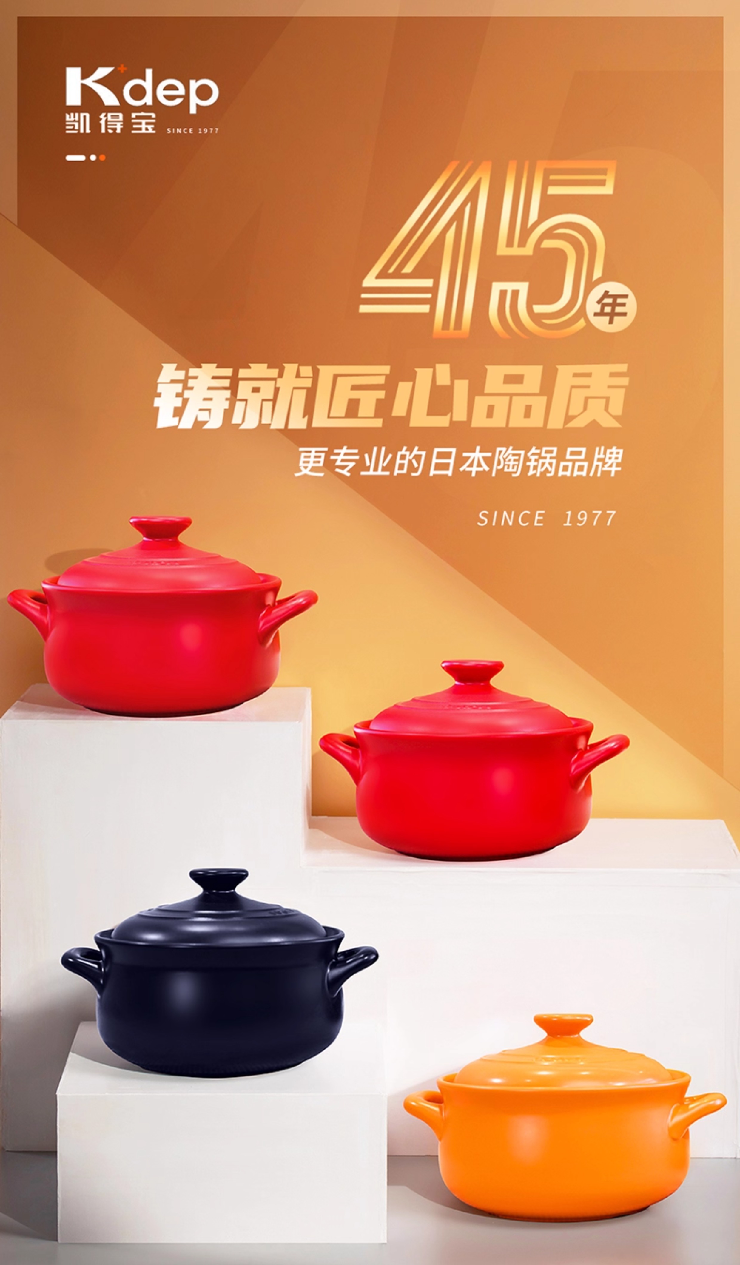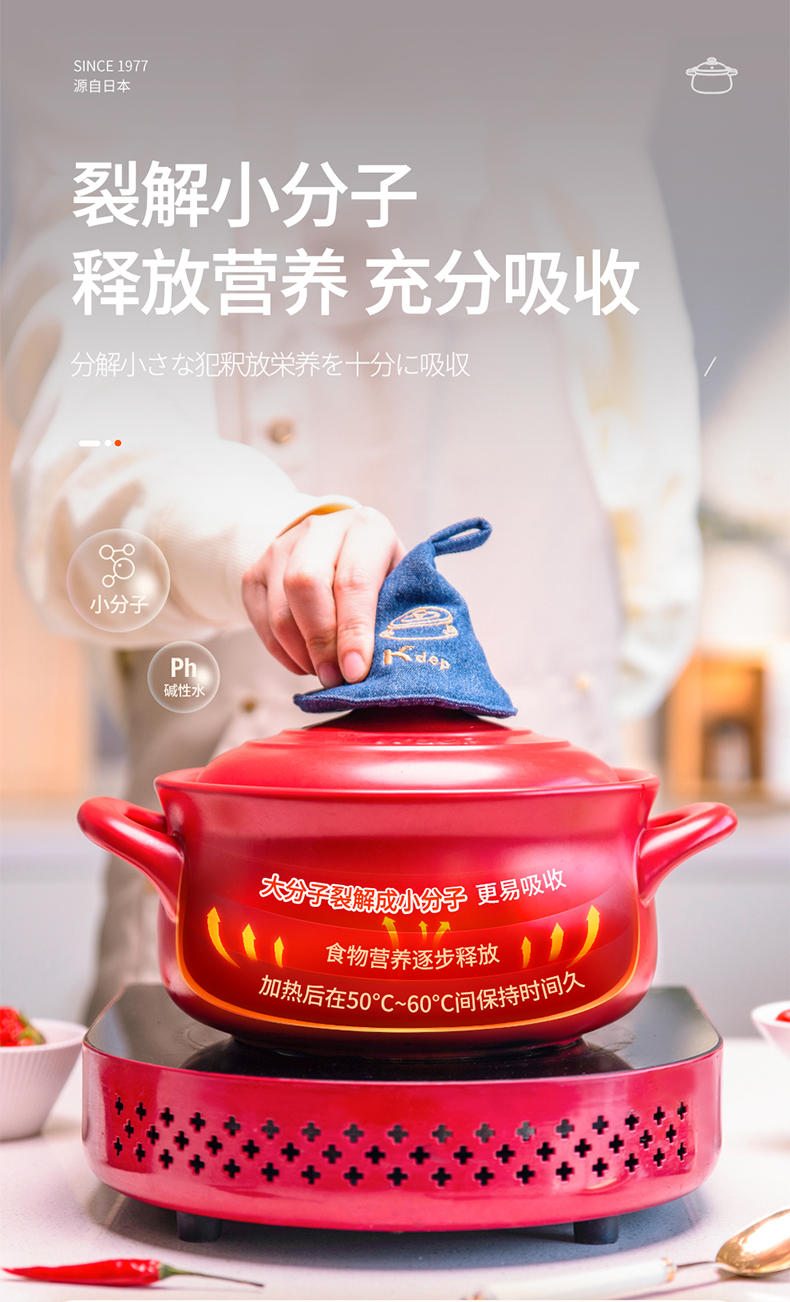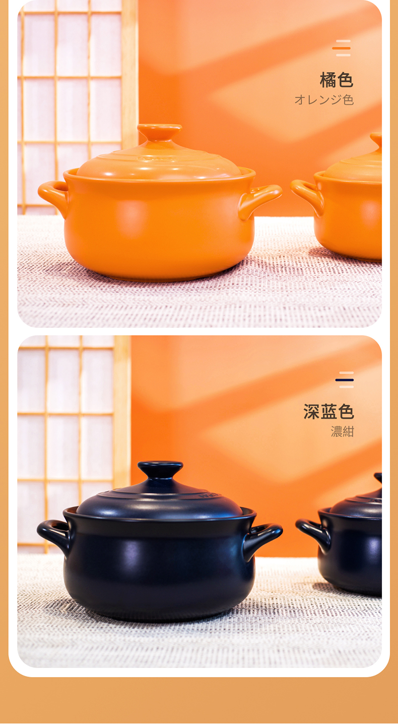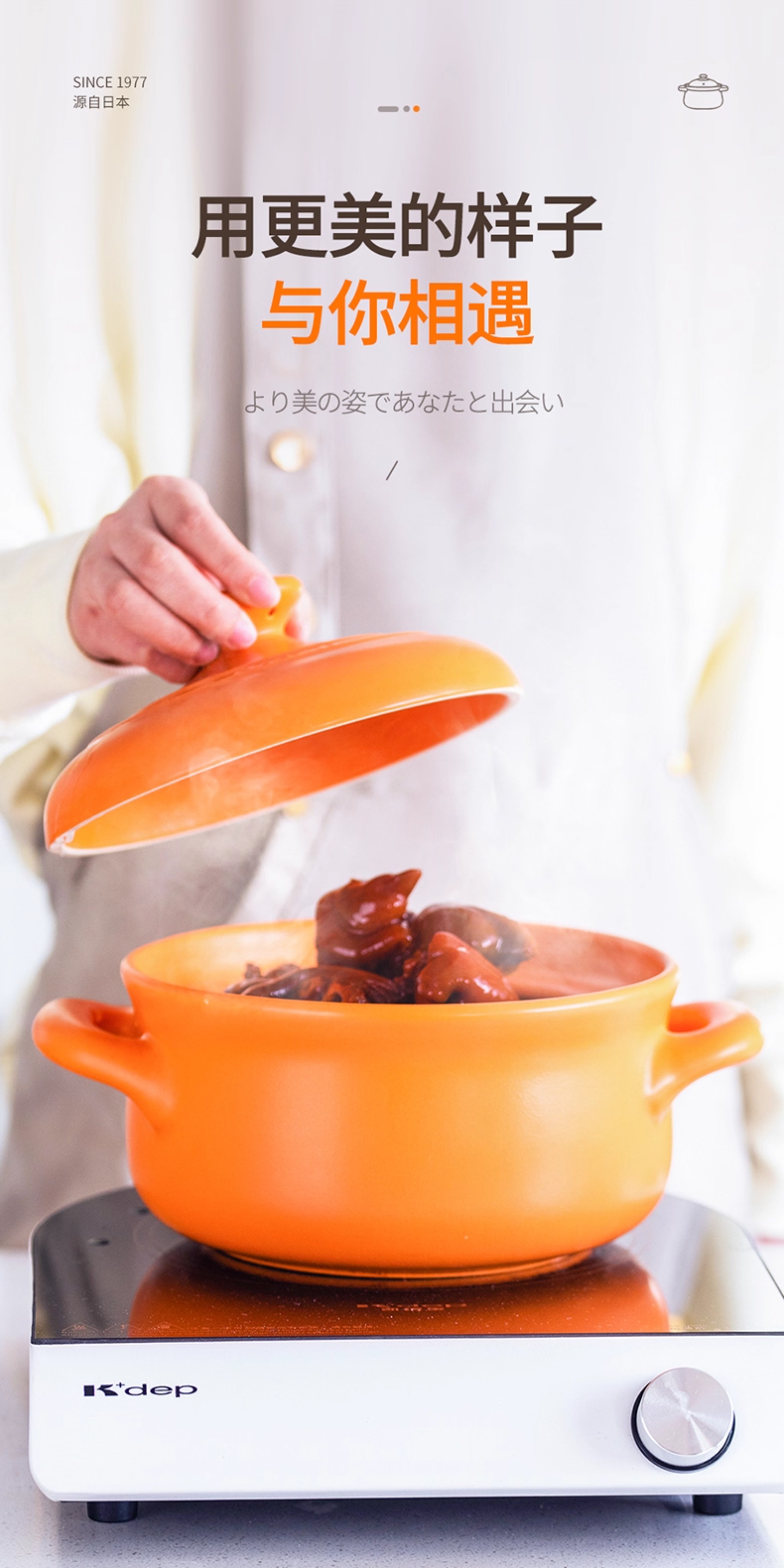 凯得宝(Kdep)日本砂锅炖锅陶瓷煲汤锅煲仔饭家用沙锅明火耐高温石锅 2~3人适用 2.2L 深蓝色