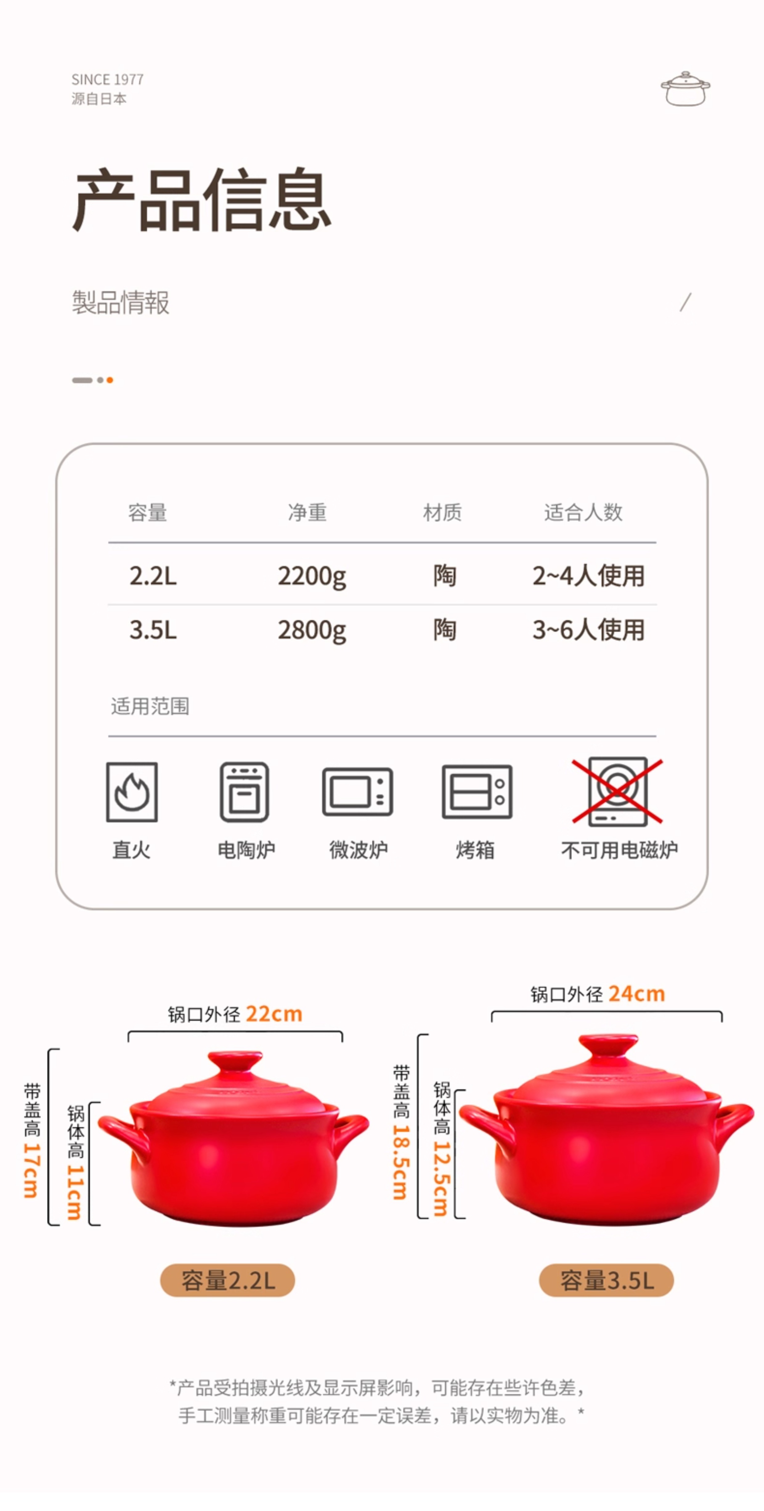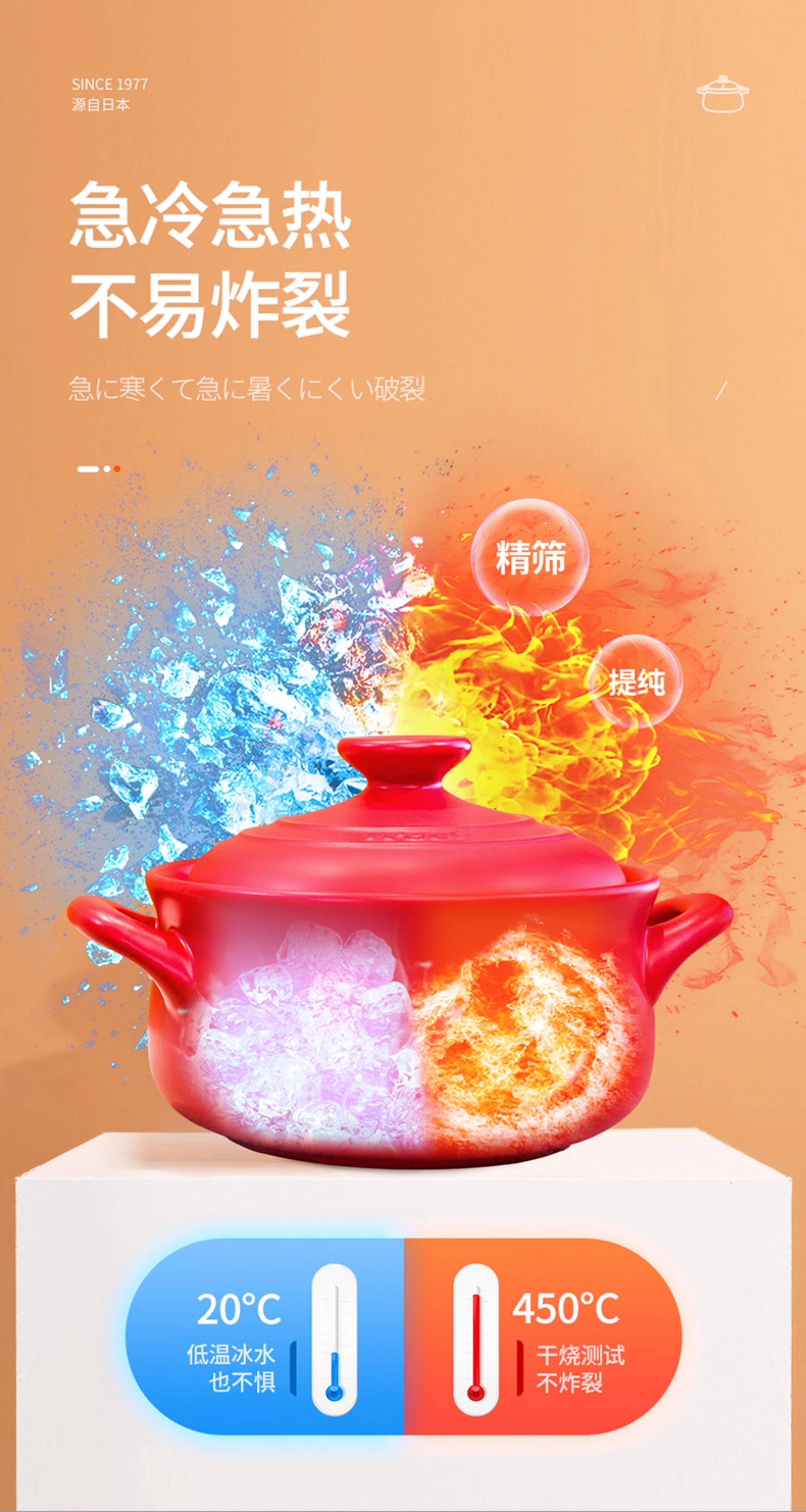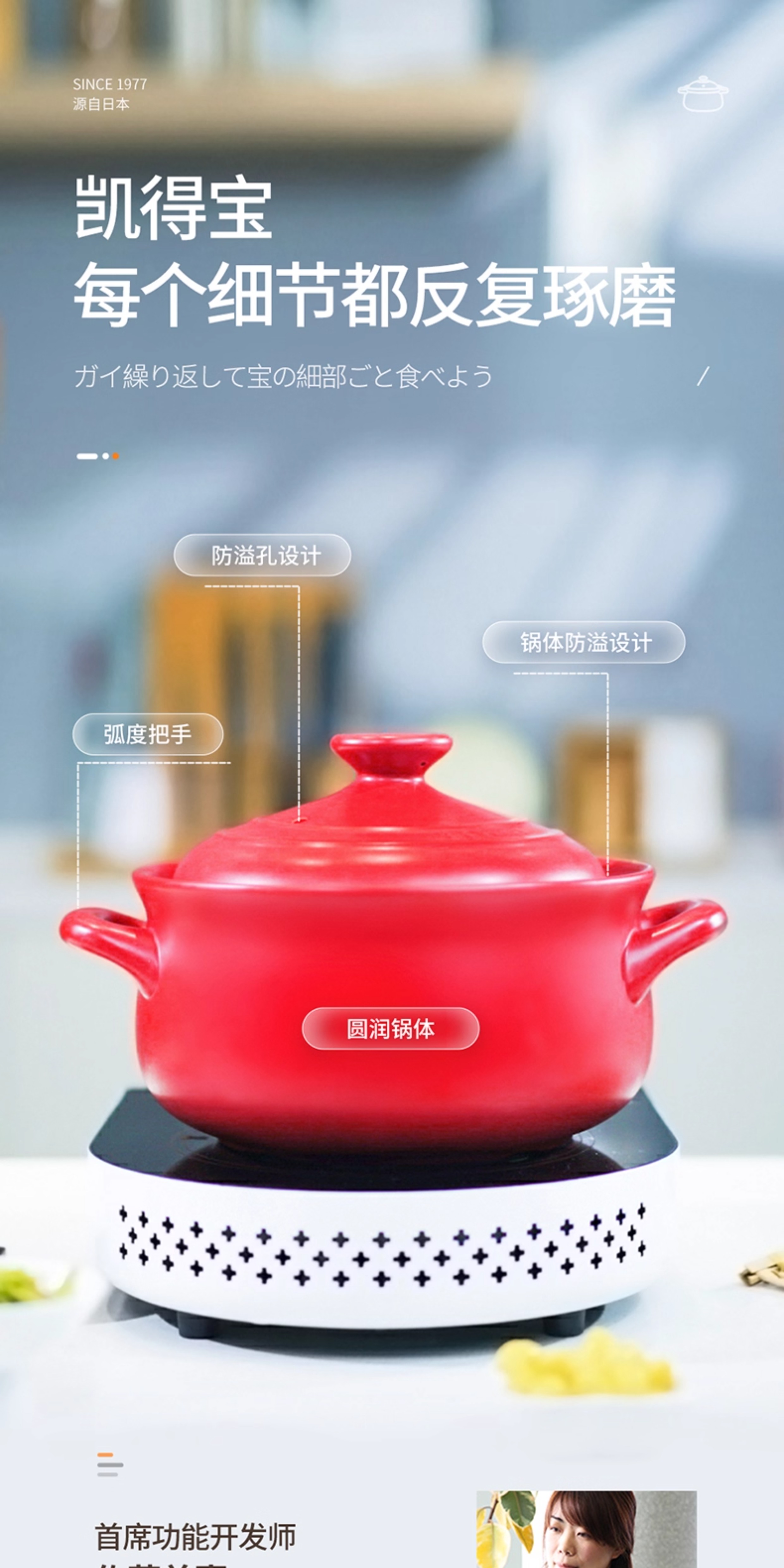 凯得宝(Kdep)日本砂锅炖锅陶瓷煲汤锅煲仔饭家用沙锅明火耐高温石锅 2~3人适用 2.2L 深蓝色