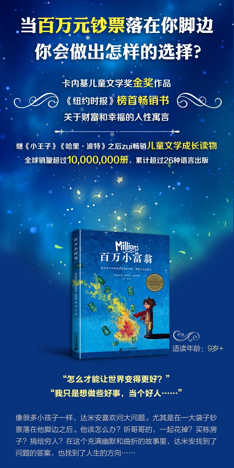 《百万小富翁》全一册 9岁+ 卡内基儿童文学奖金奖作品 《纽约时报》榜首畅销书 关于财富和幸福的人性寓言