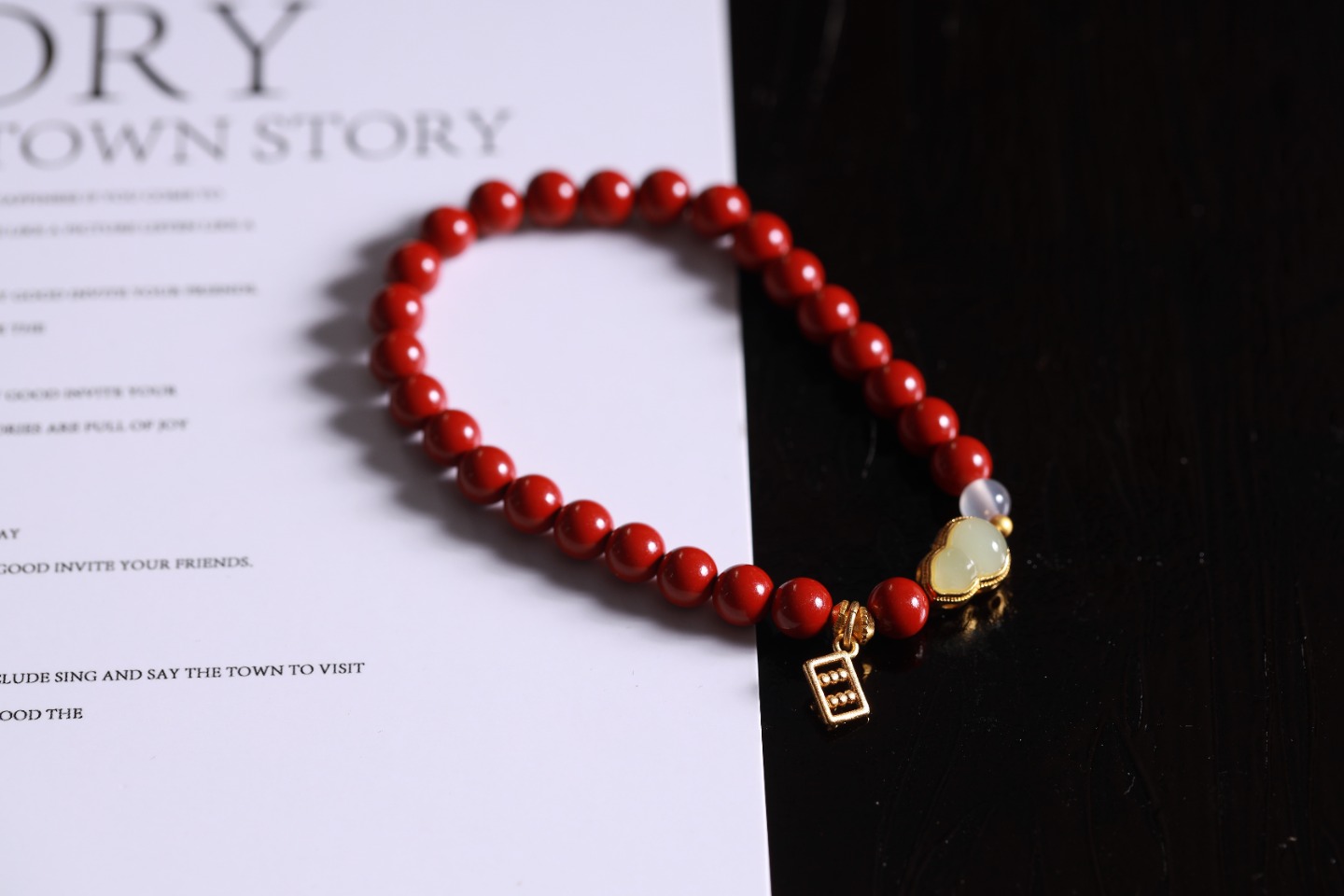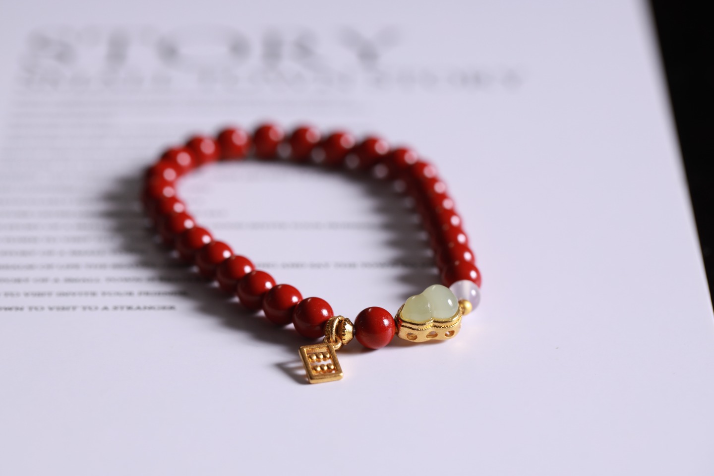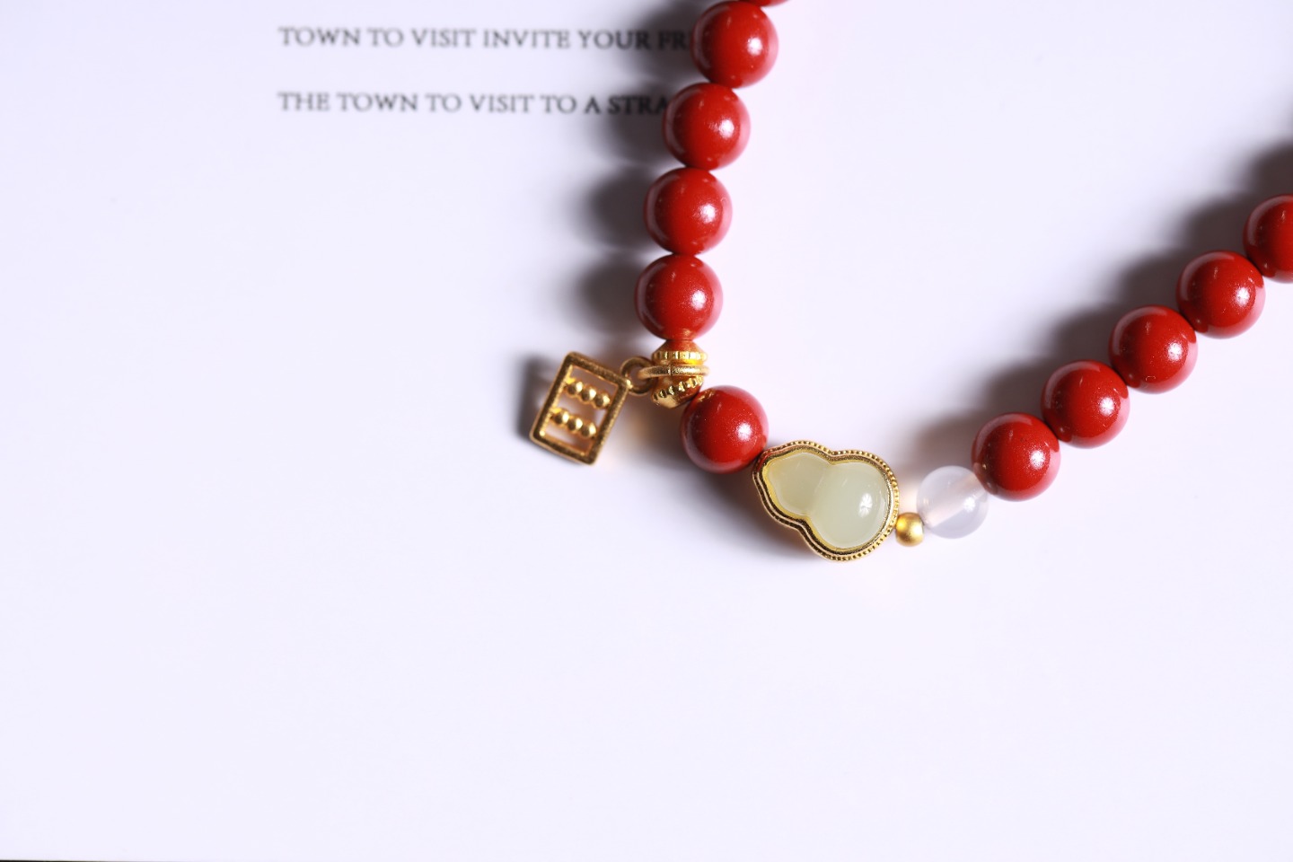 朱砂小珠串串红润,守护随身财运通!白玛瑙珠纯净透亮,心绪安宁好心情。铜珠聚财气,沙金齿轮珠转动财源滚滚来!迷你算盘吊坠精巧玲珑,金珠灵活,精打细算聚宝财。沙金玉石葫芦圆润饱满,福禄健康稳在手。整链细巧藏财智,财富智慧双全,稳稳幸福常相伴!