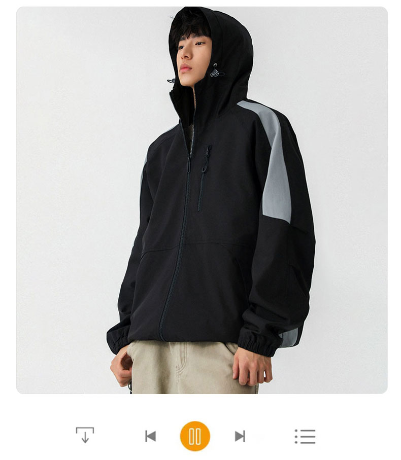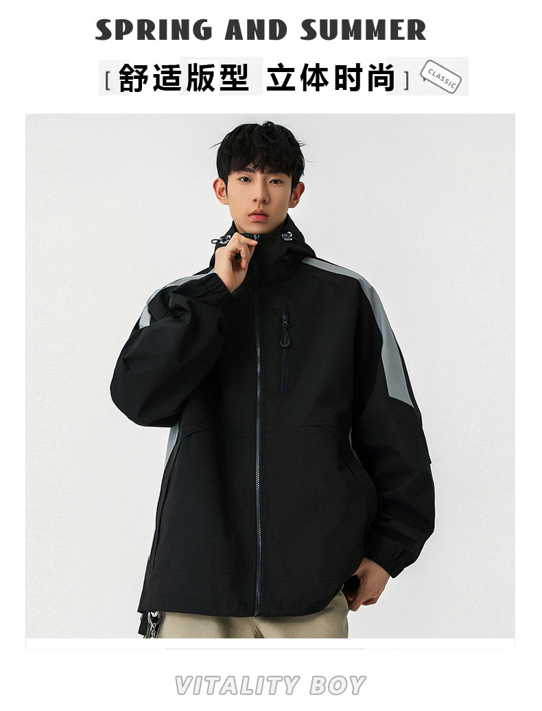 半身缘男装 春季百搭连帽外套拼接撞色宽松夹克外套261112U01310045