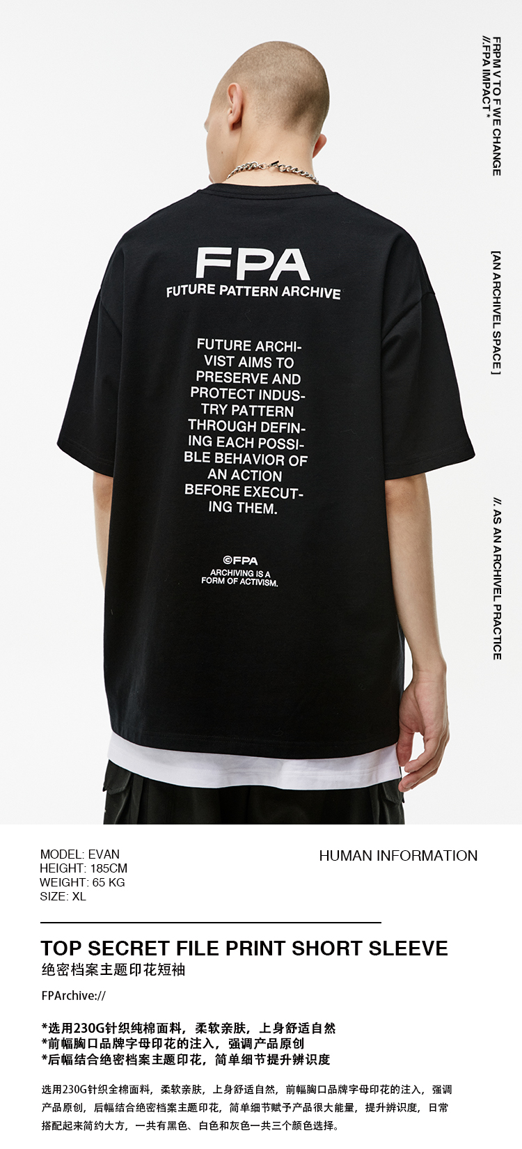 FPA(VENGETICE) 绝密档案主题印花短袖 国潮牌嘻哈宽松街头T恤男