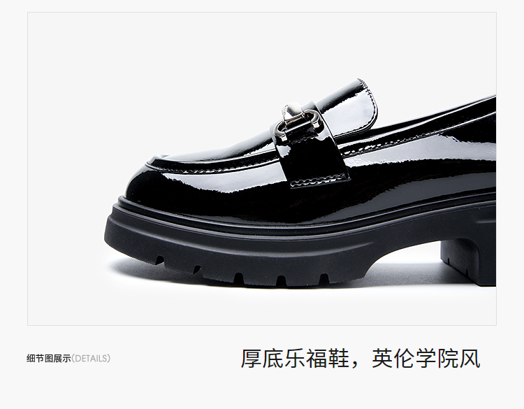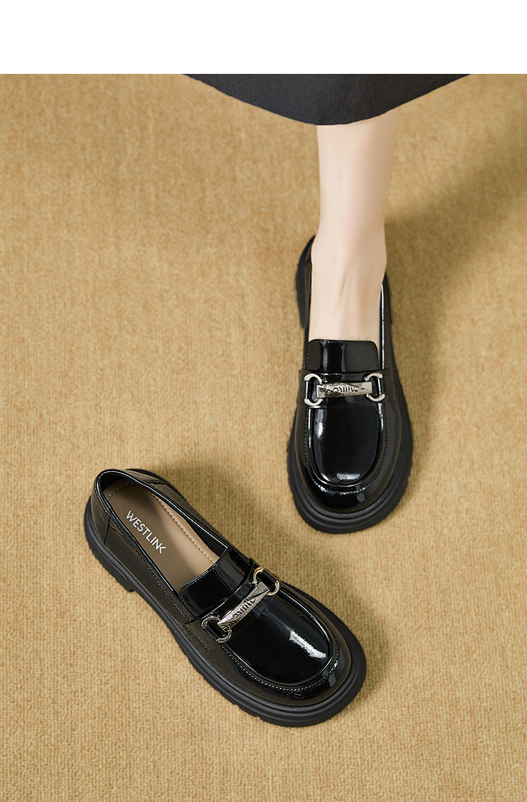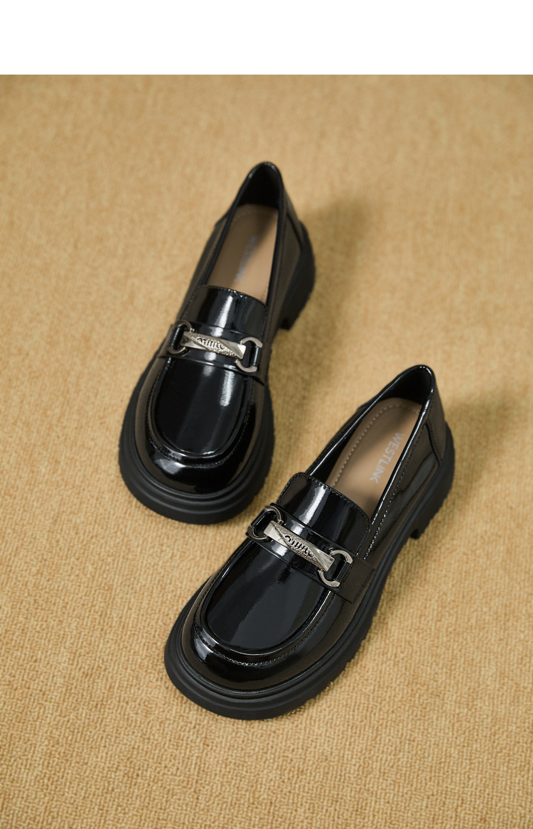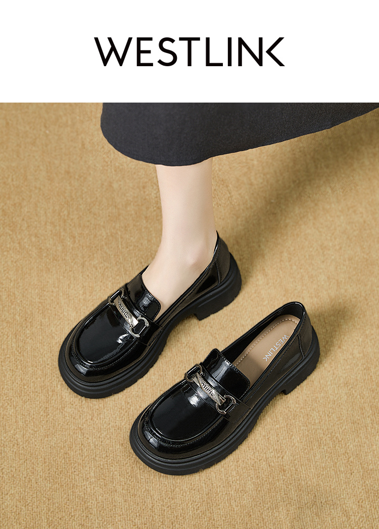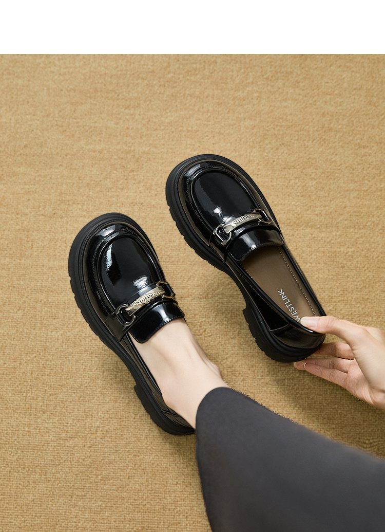 西遇厚底乐福鞋女2025新款秋季漆皮英伦学院风JK鞋子圆头小皮鞋V1857107