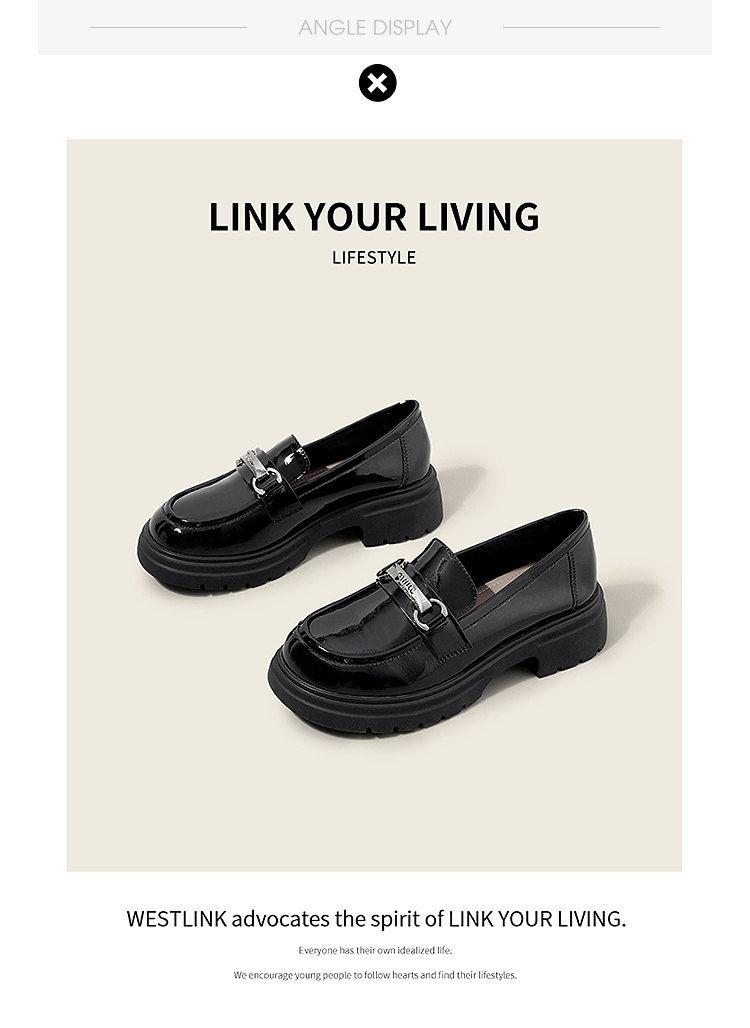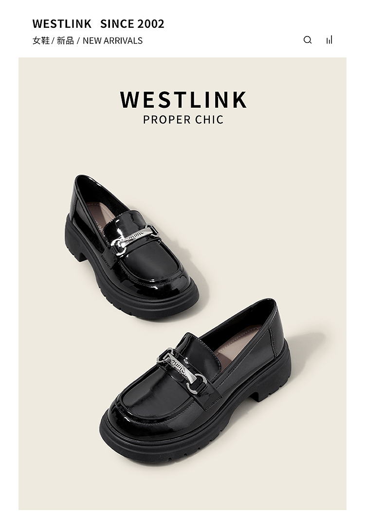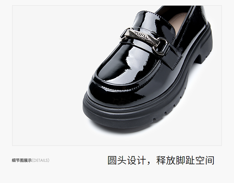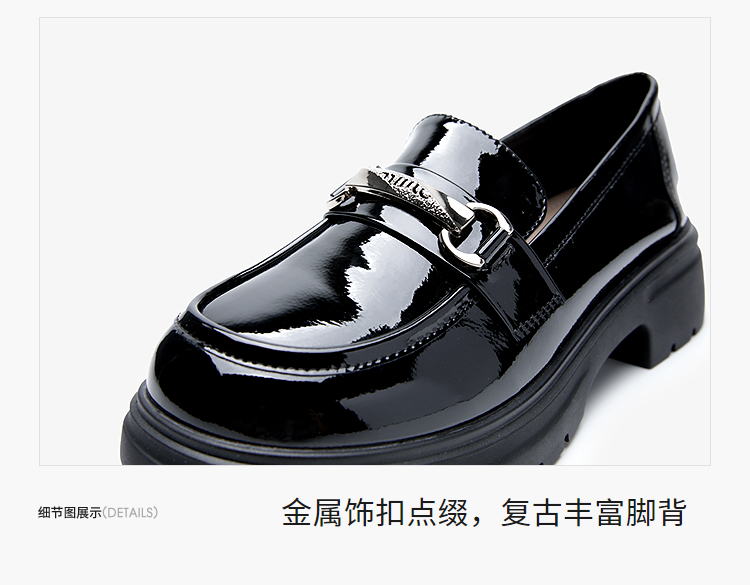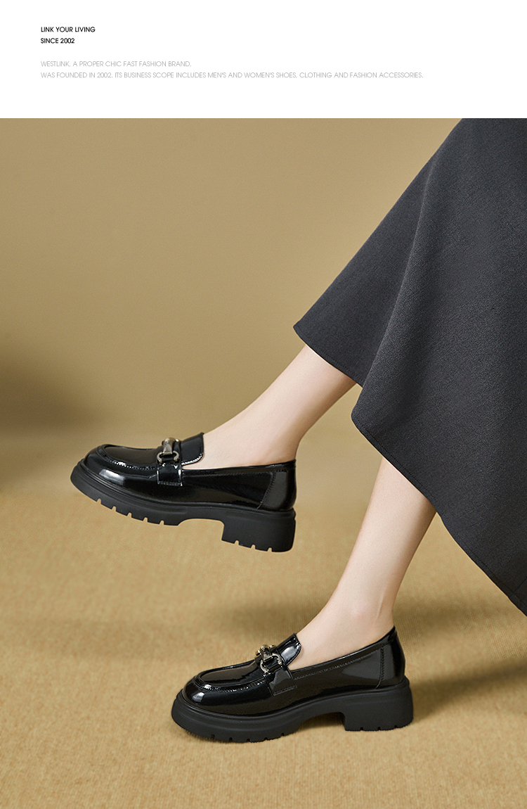 西遇厚底乐福鞋女2025新款秋季漆皮英伦学院风JK鞋子圆头小皮鞋V1857107