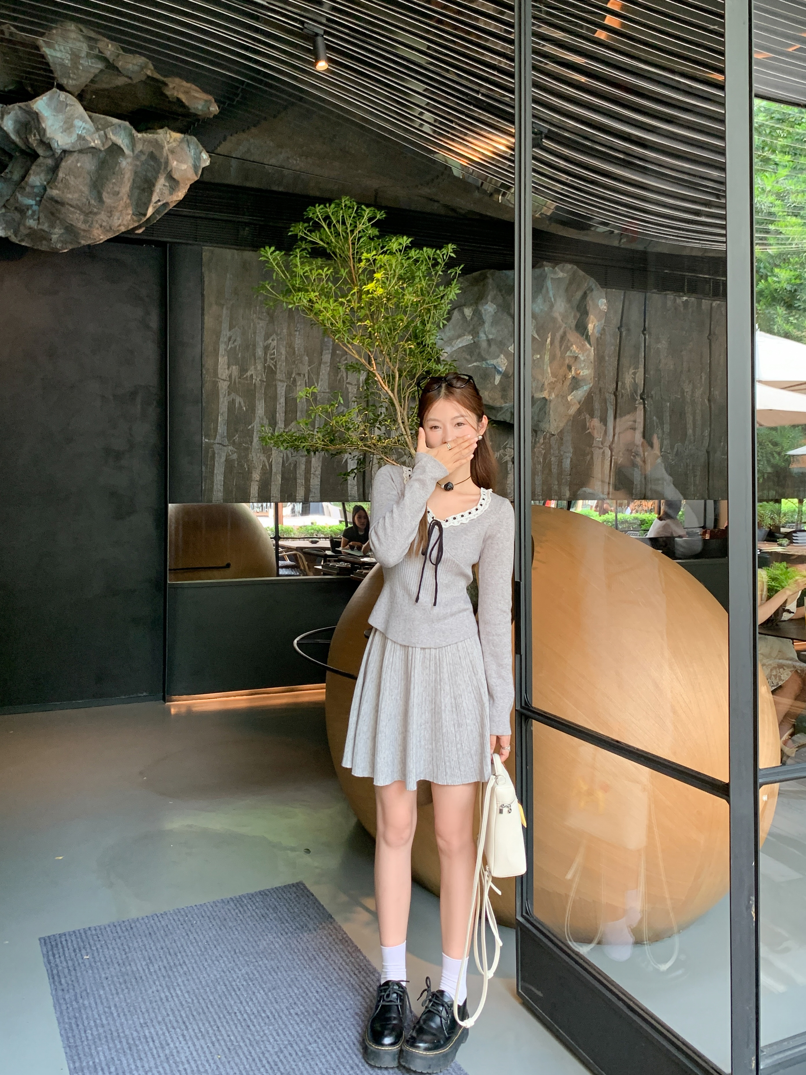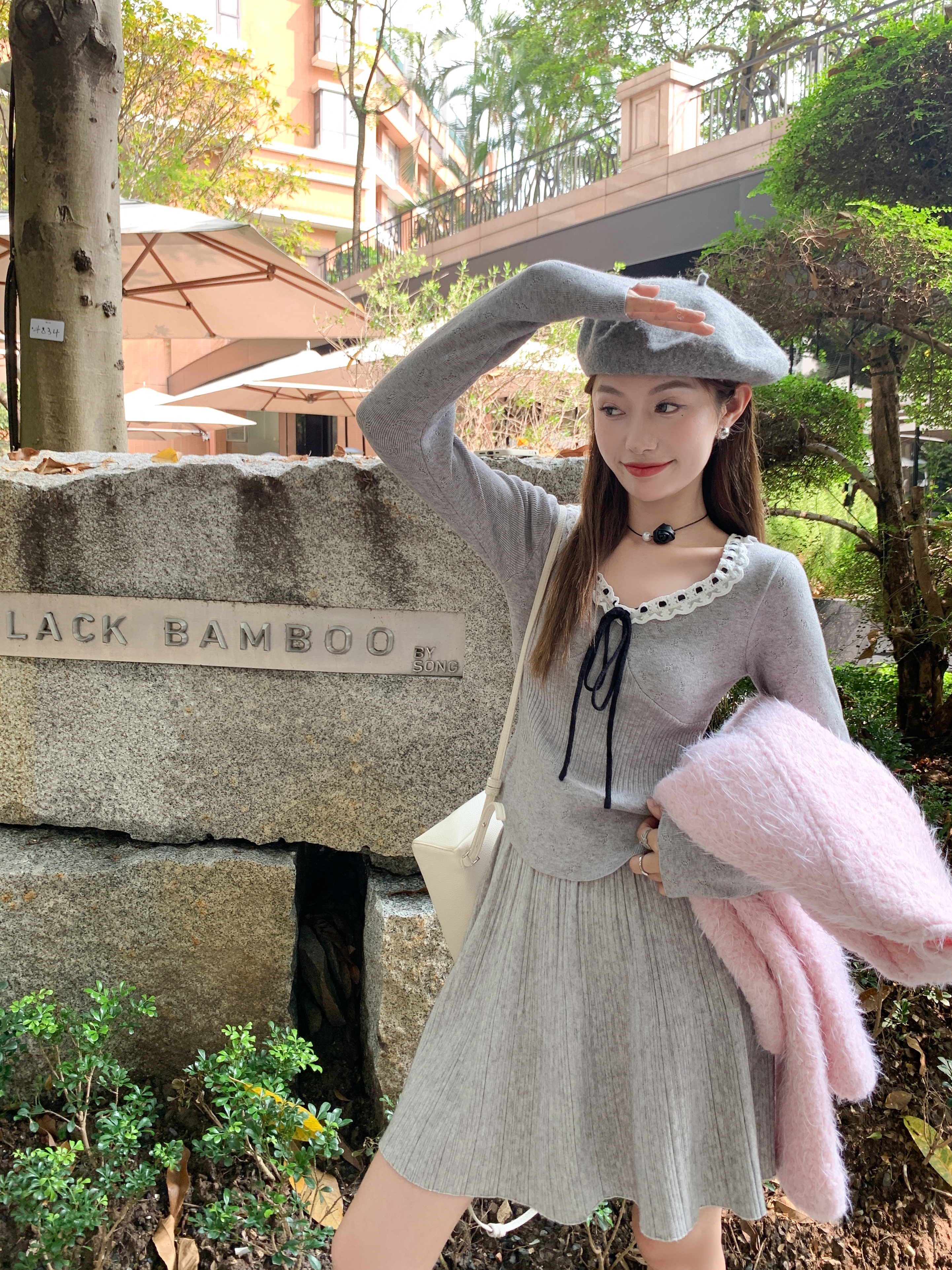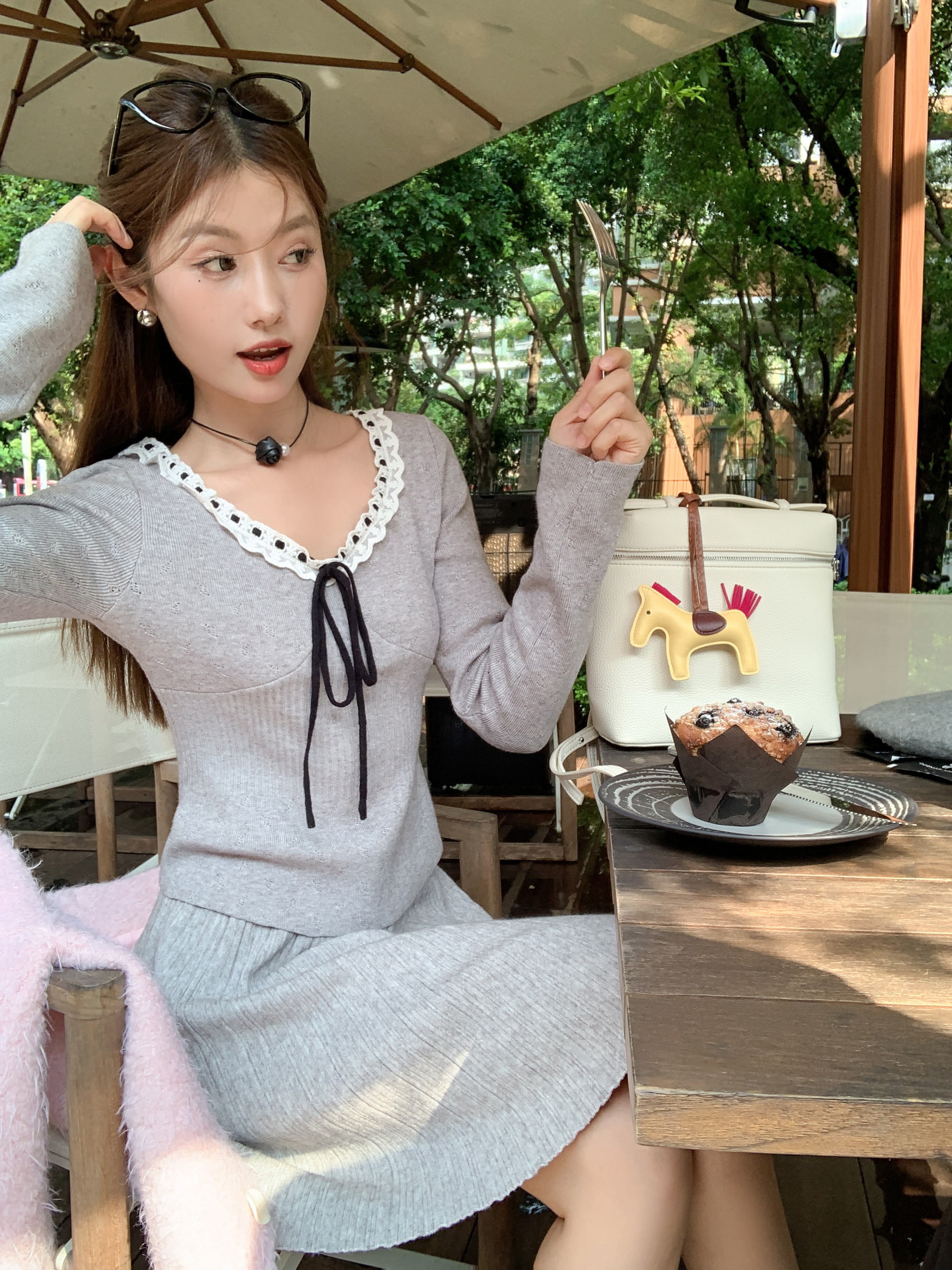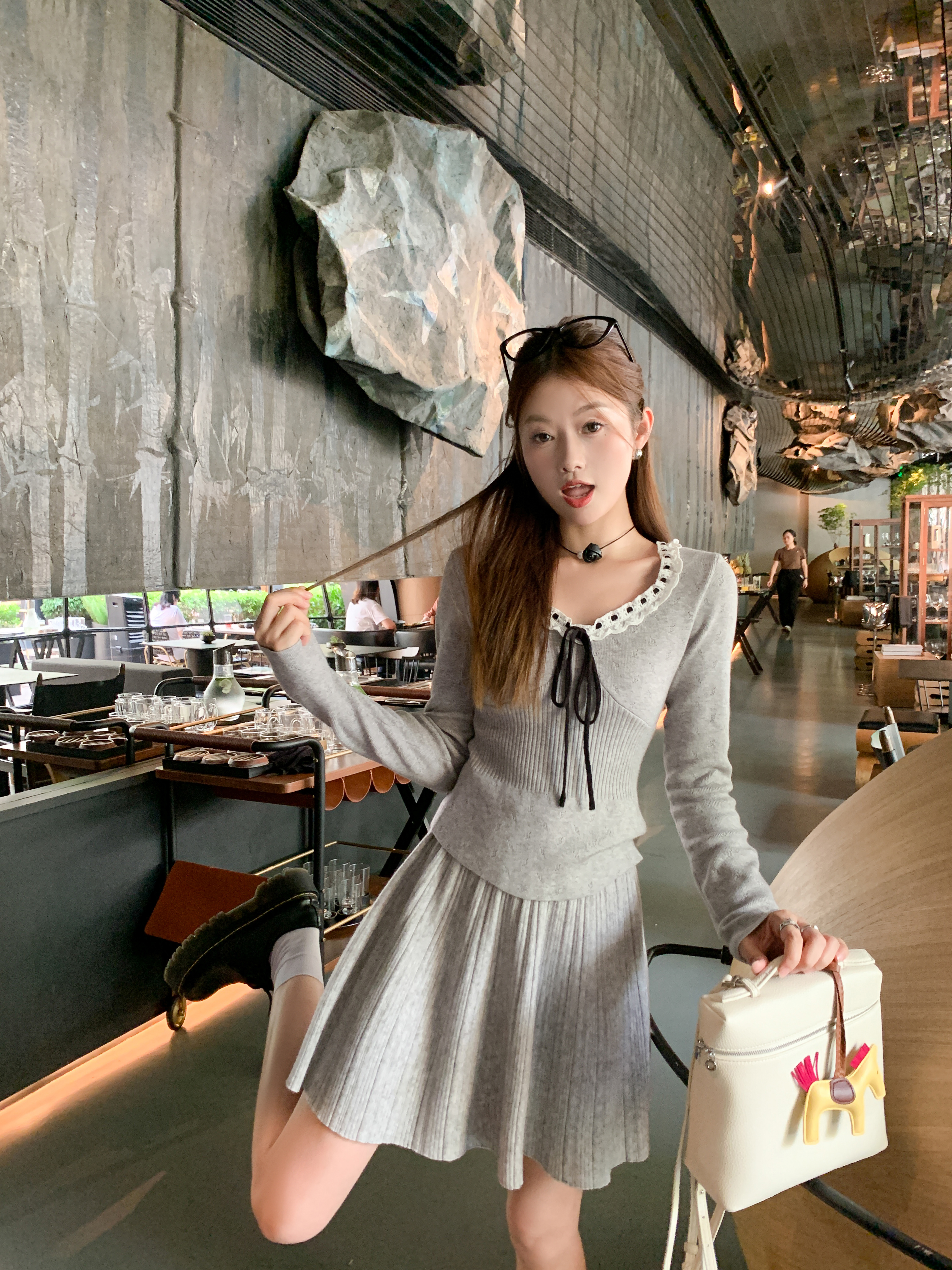 <曾小咸推荐>新品现货秒杀!卖完下架不再补!微信粉丝打折价!灰色领口系蝴蝶结毛织衫 日常119.99 立减40 秒杀79.99!!