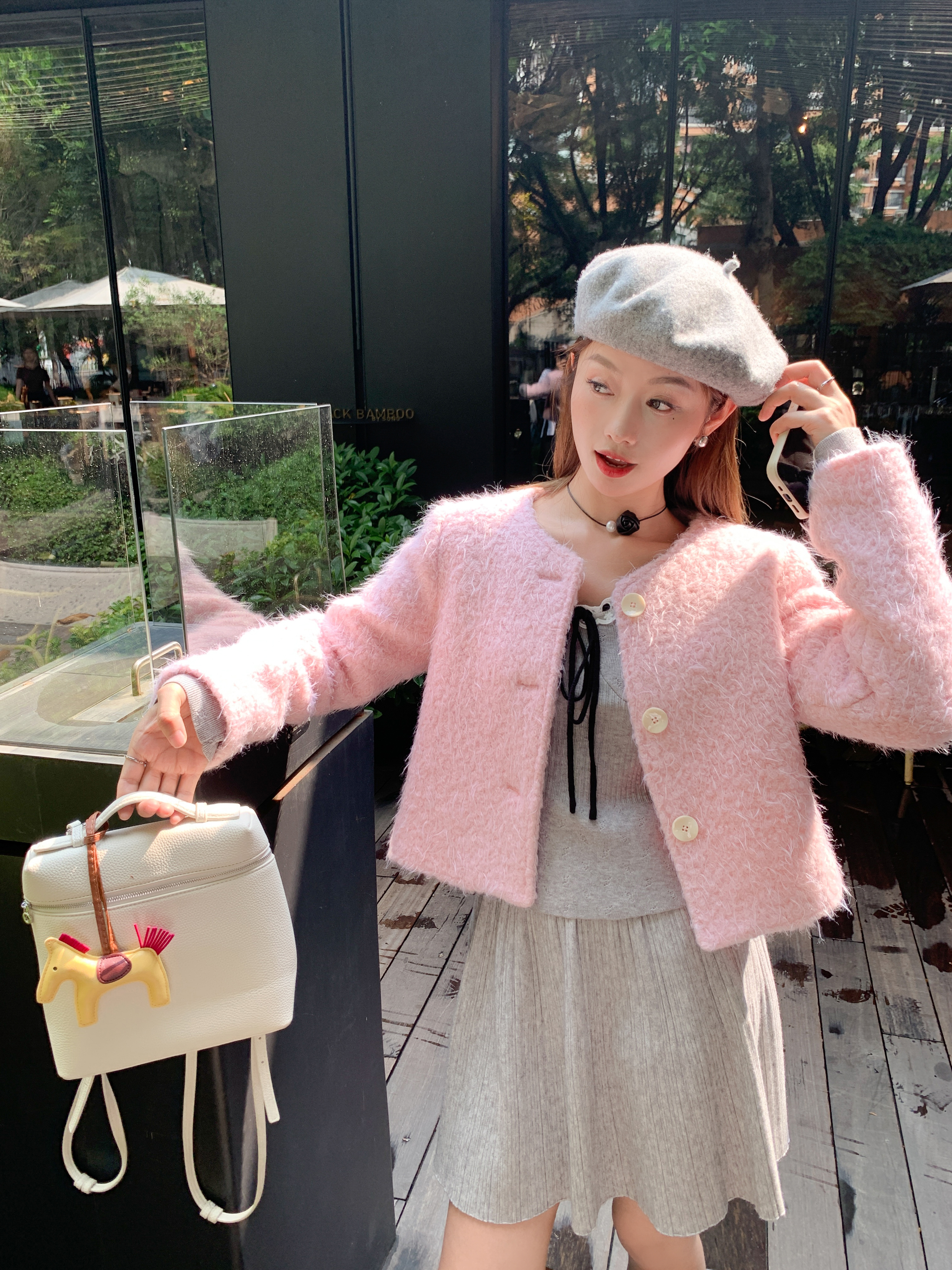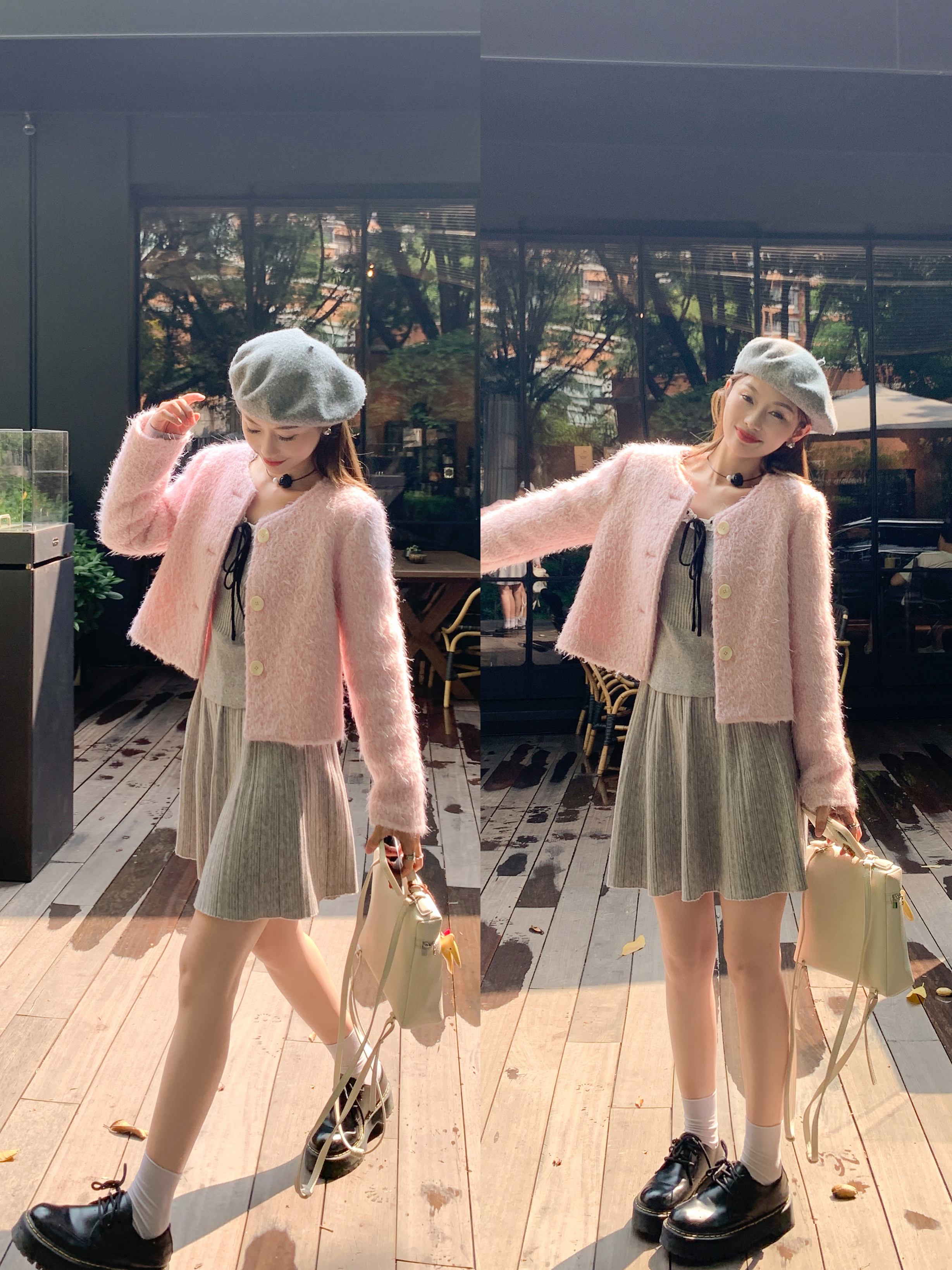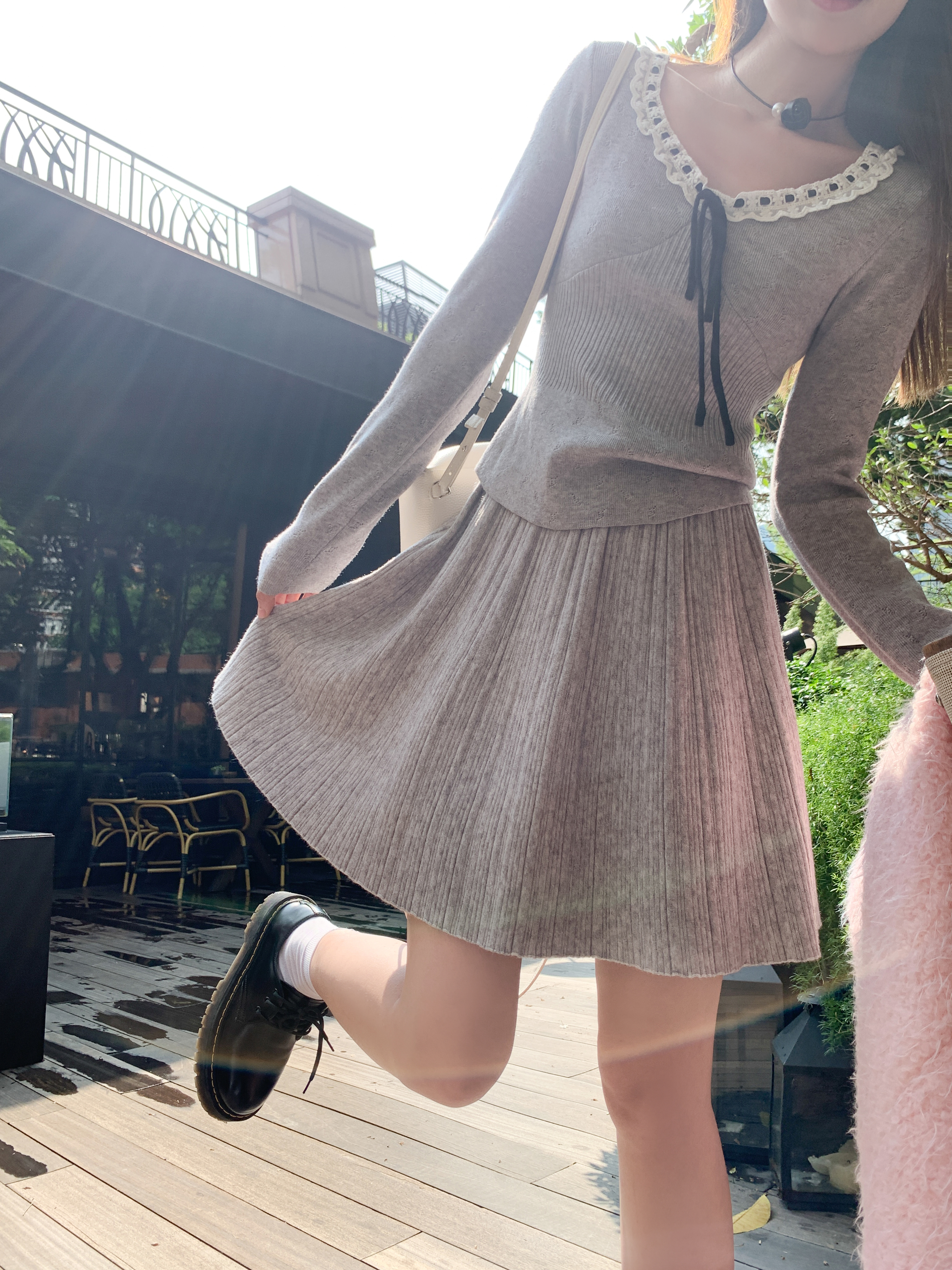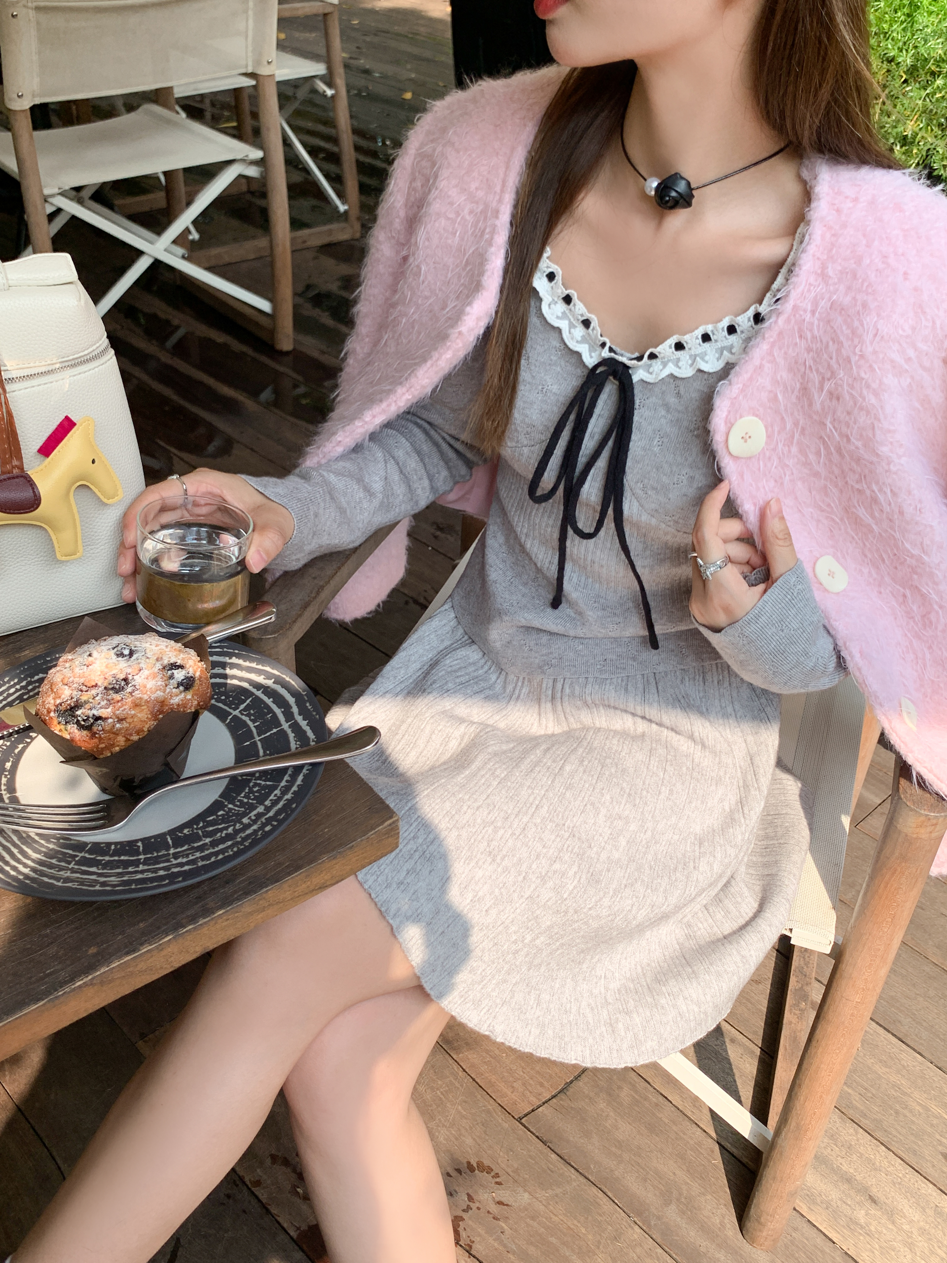 <曾小咸推荐>新品现货秒杀!卖完下架不再补!微信粉丝打折价!灰色领口系蝴蝶结毛织衫 日常119.99 立减40 秒杀79.99!!