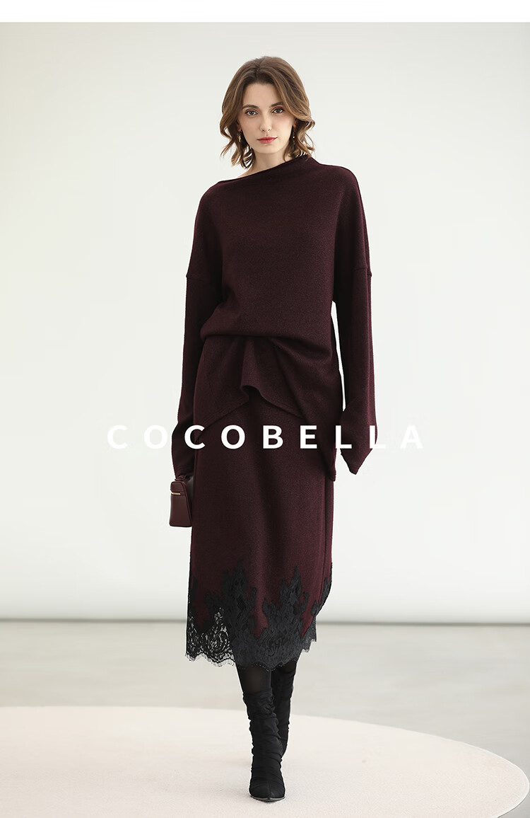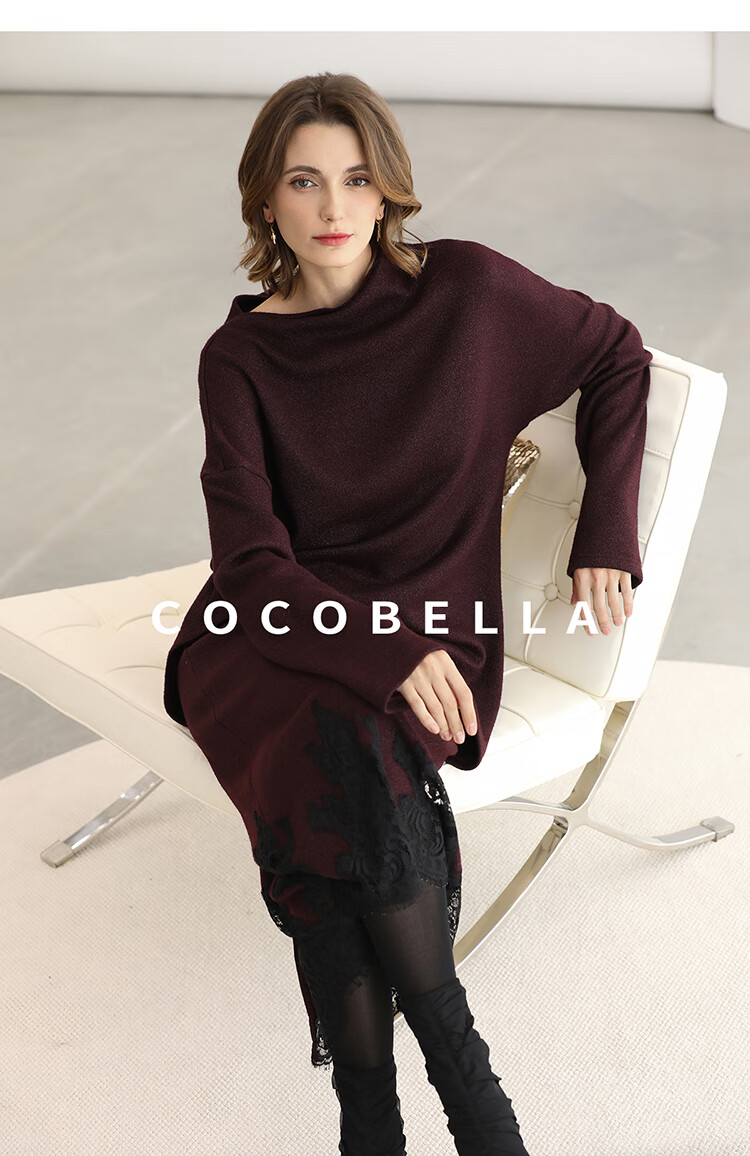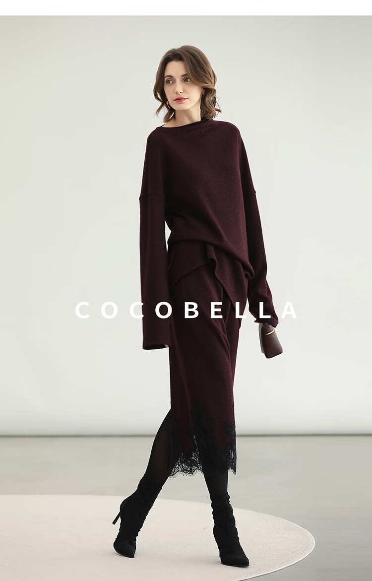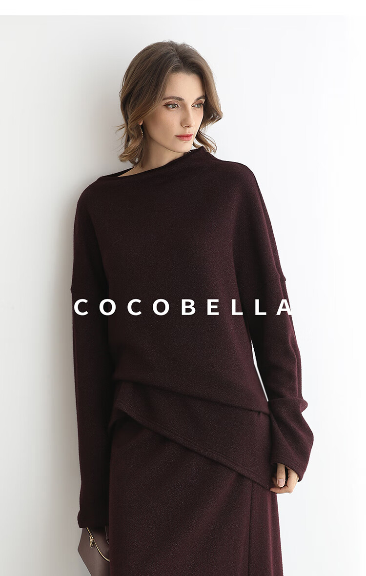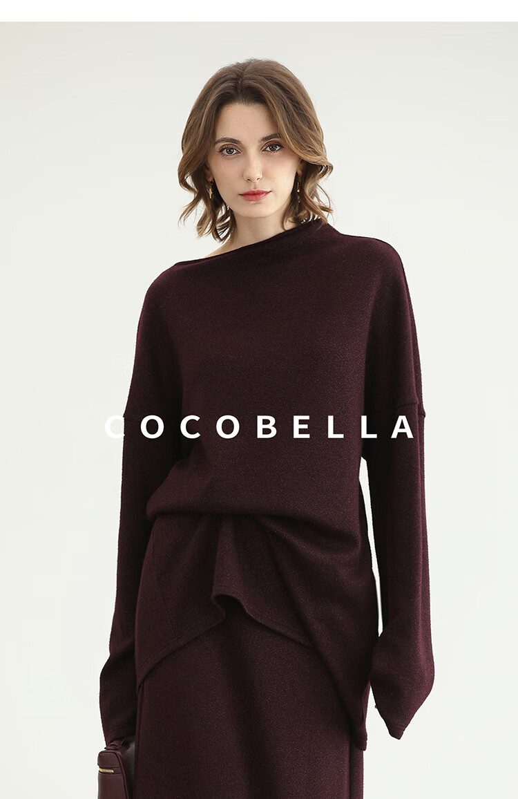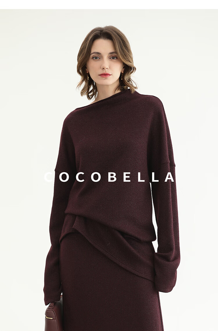 COCOBELLA一字领针织衫女25新款酒红色慵懒风气质毛衣MZ0073