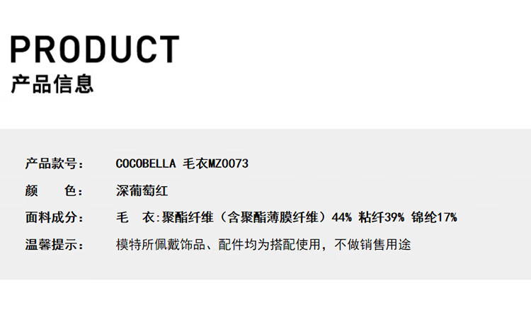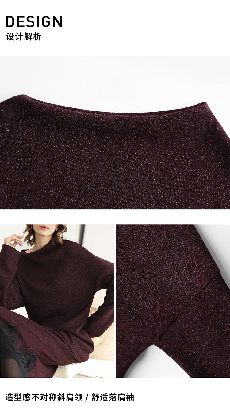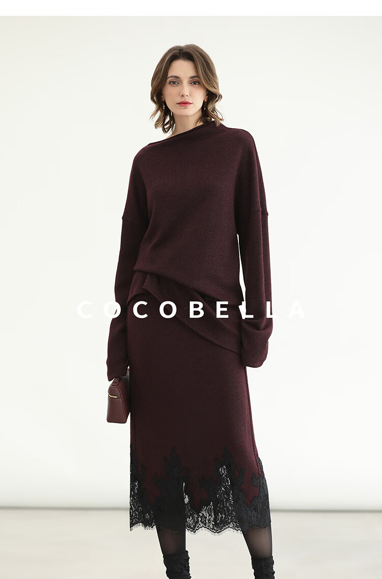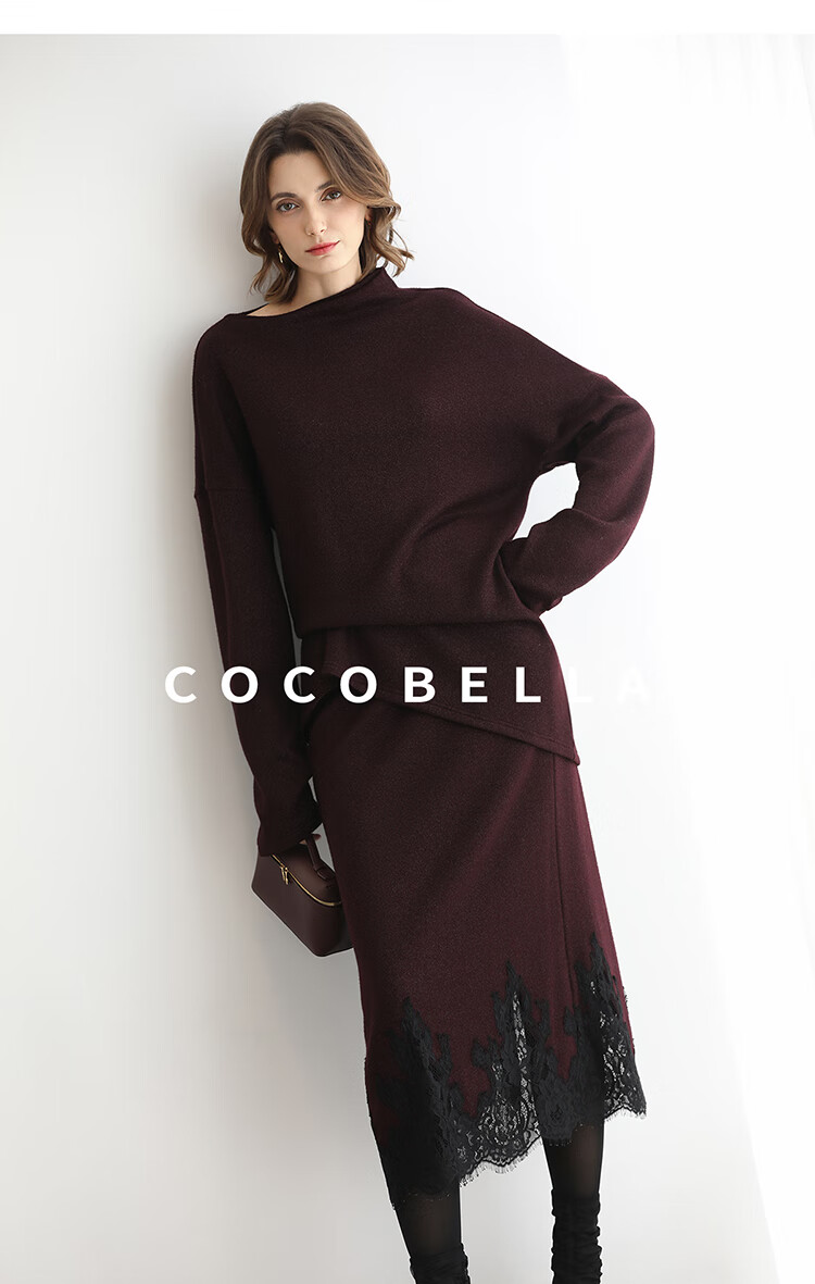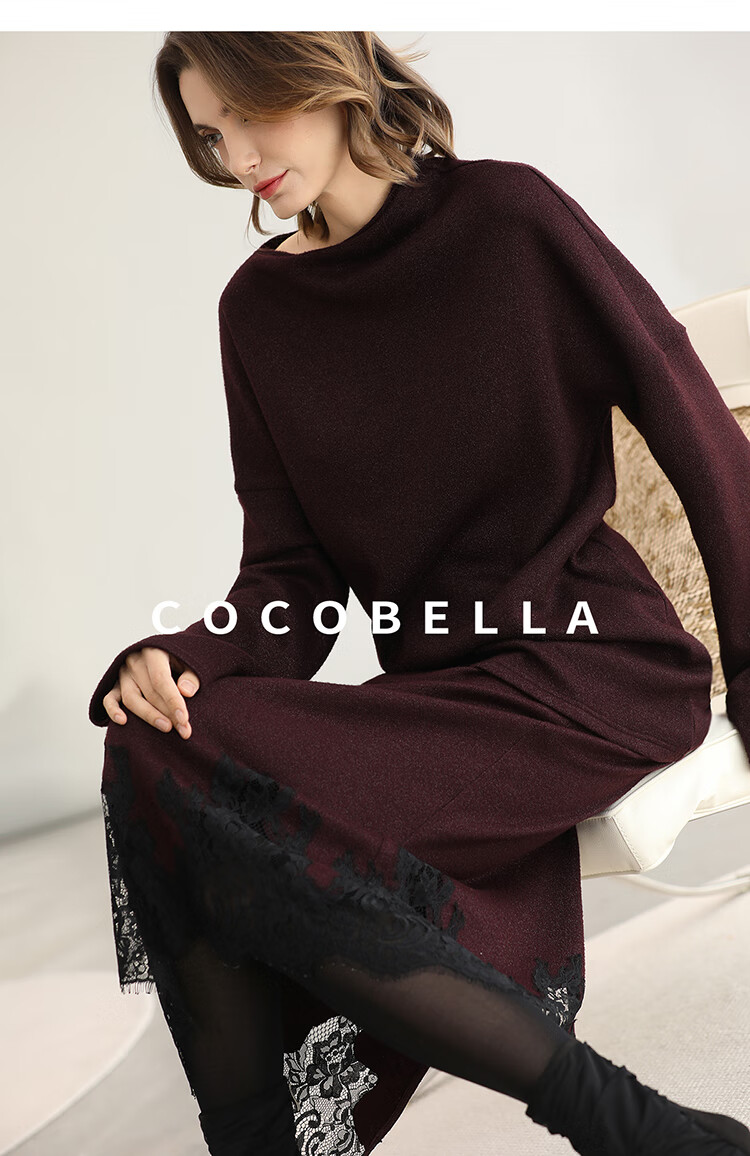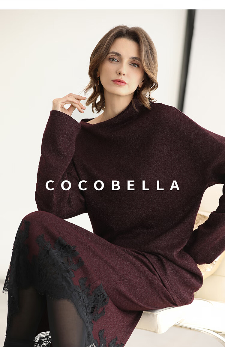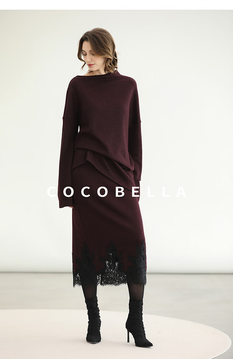 COCOBELLA一字领针织衫女25新款酒红色慵懒风气质毛衣MZ0073