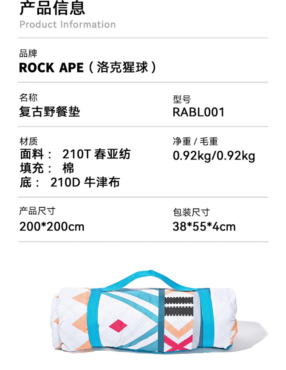 【复古防潮野餐垫】洛克猩球 RockApe 复古野餐垫 户外露营便携午休野外地垫轻便草坪野餐垫 复古野餐垫