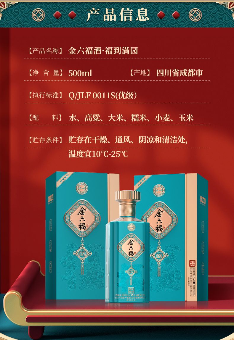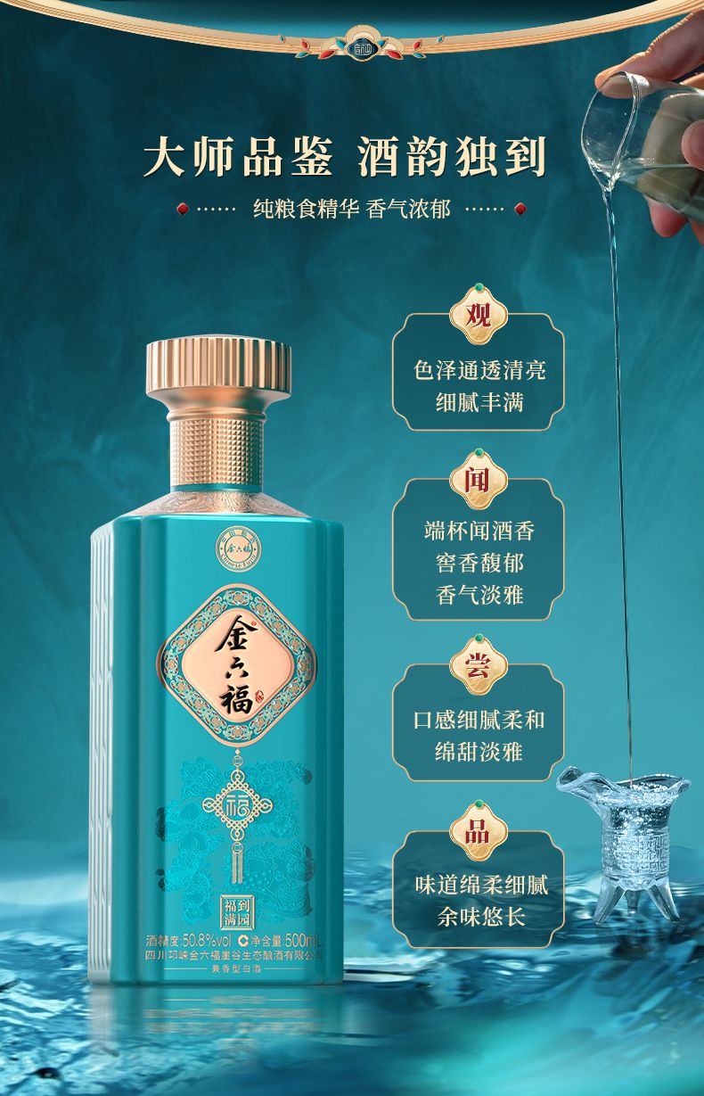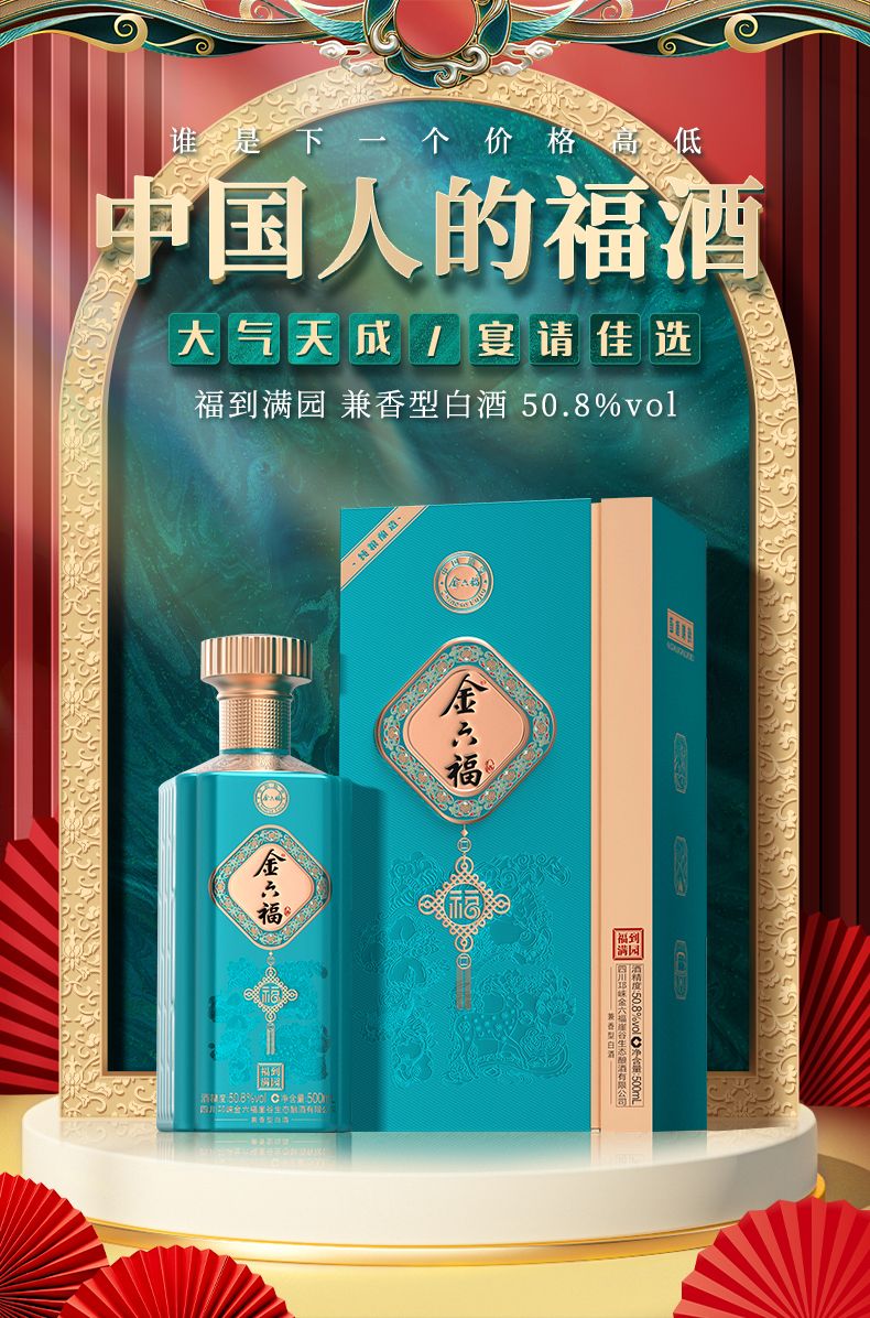 金六福酒 福到满园 兼香型白酒50.8度 整箱 500ml*6瓶