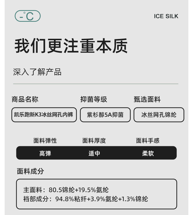[新款上市】凯乐跑新K3冰丝网眼运动速干内裤