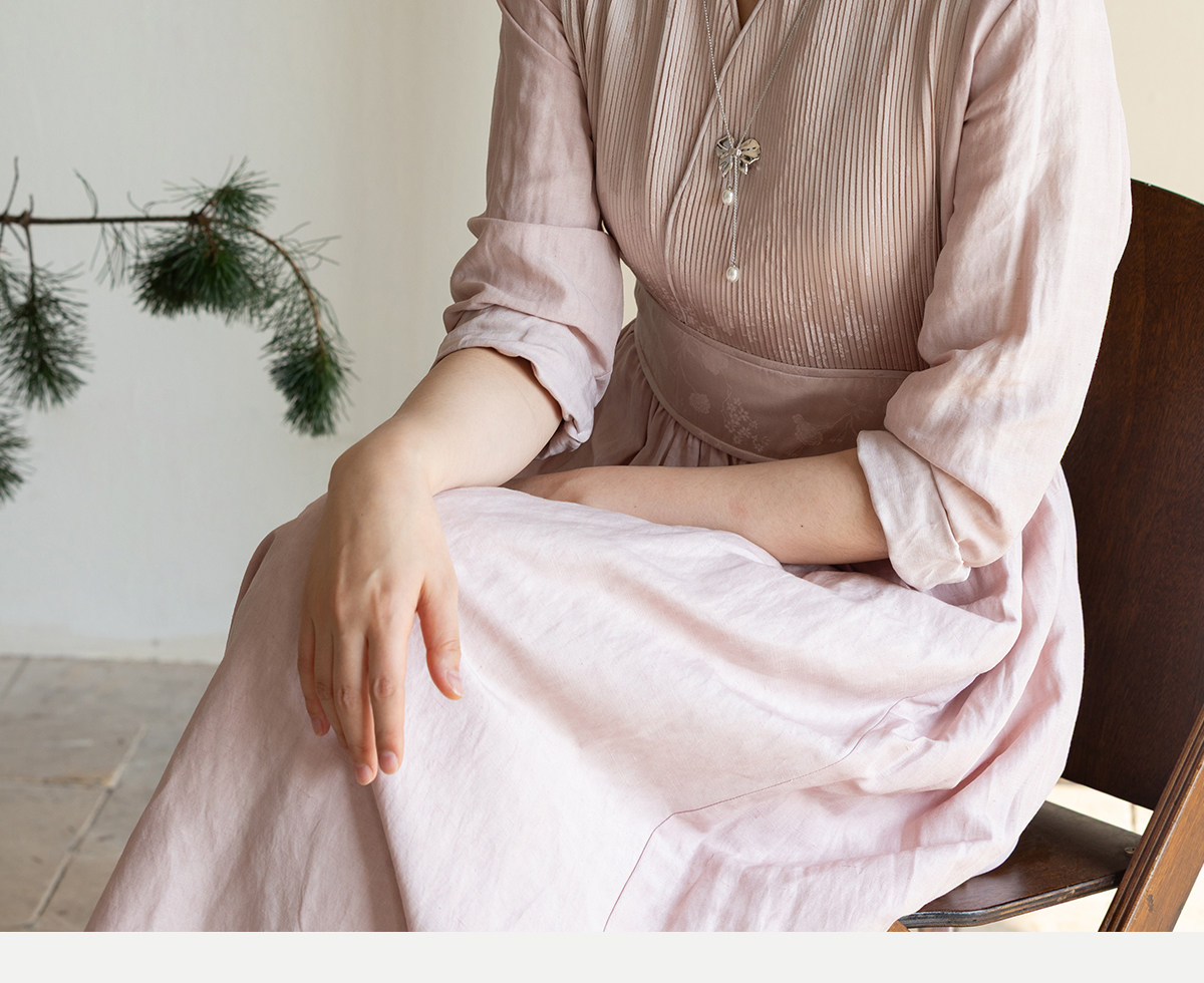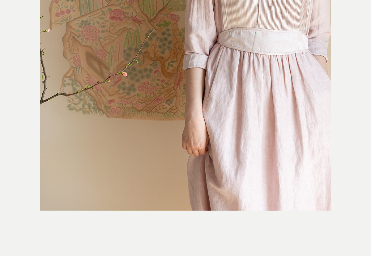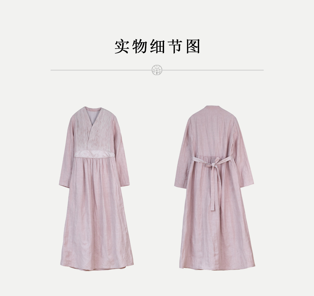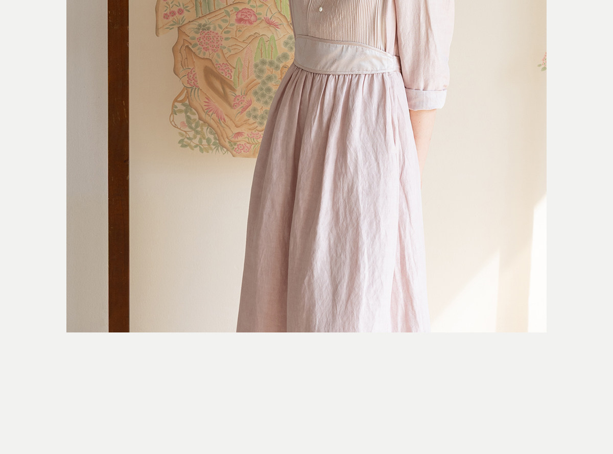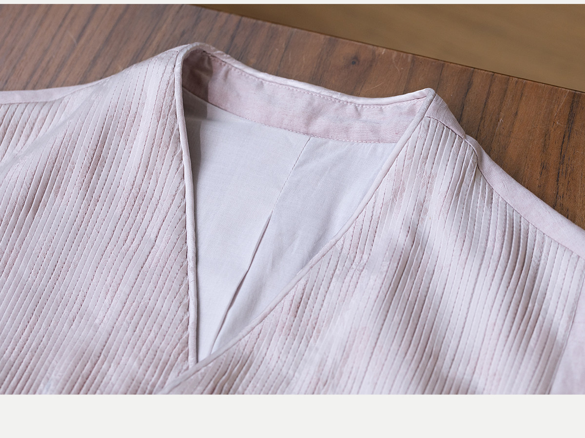 牧衣游原创 32姆米重磅丝麻打条连衣裙新款宽松粉色气质长裙 空谷