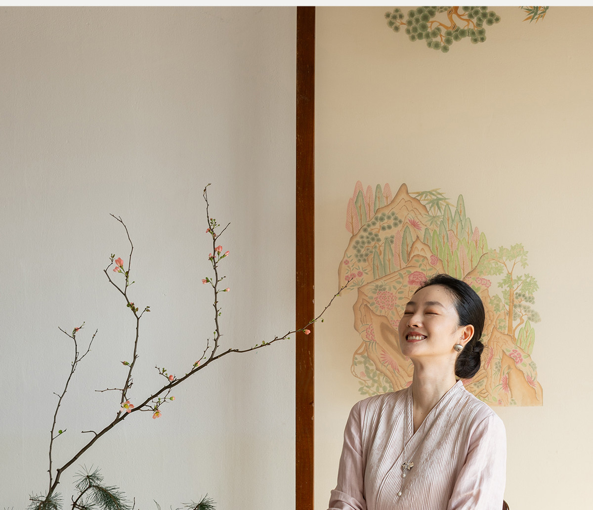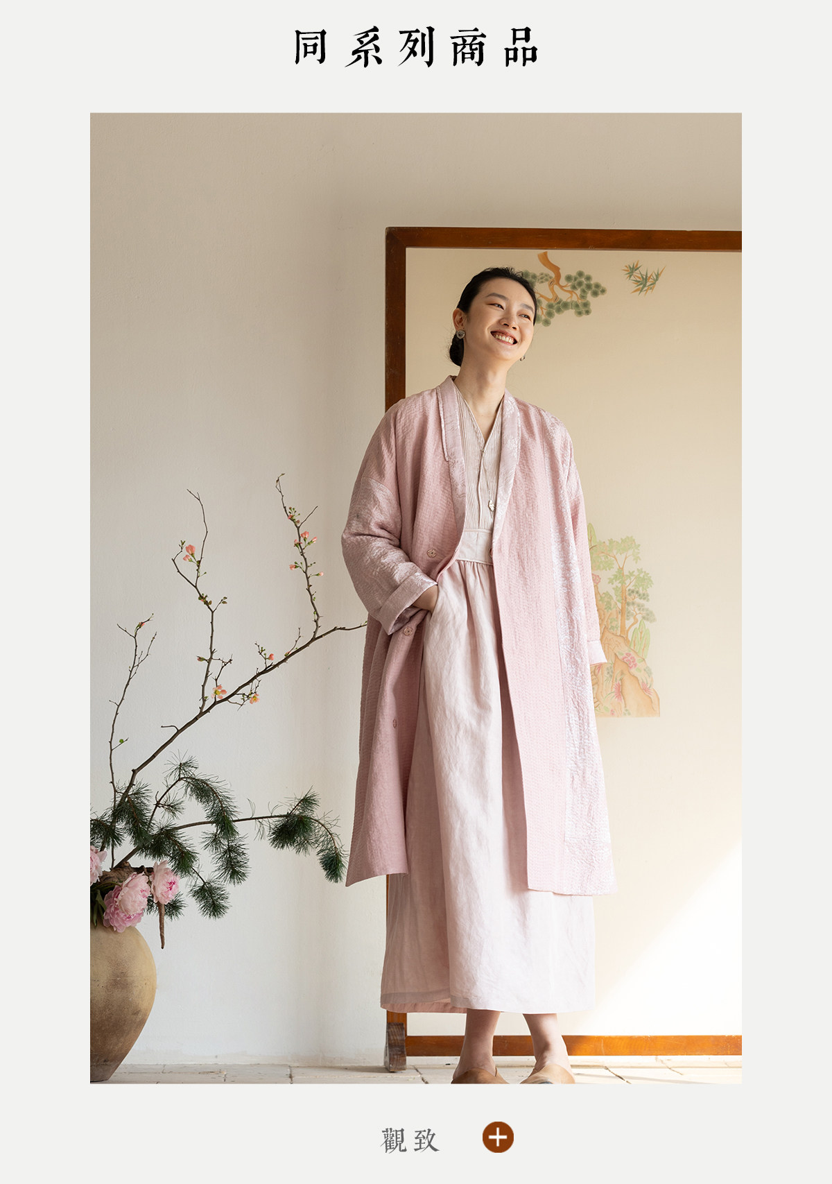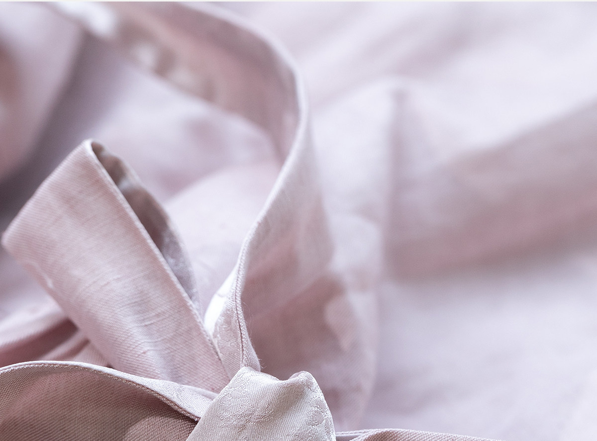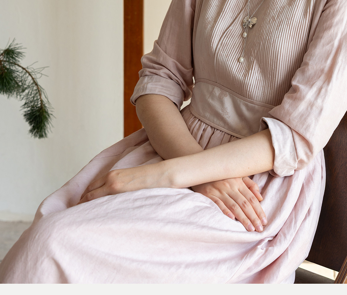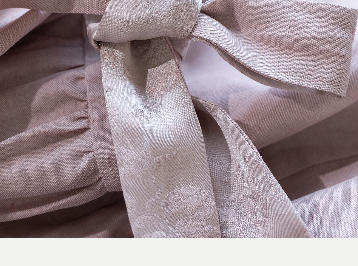 牧衣游原创 32姆米重磅丝麻打条连衣裙新款宽松粉色气质长裙 空谷