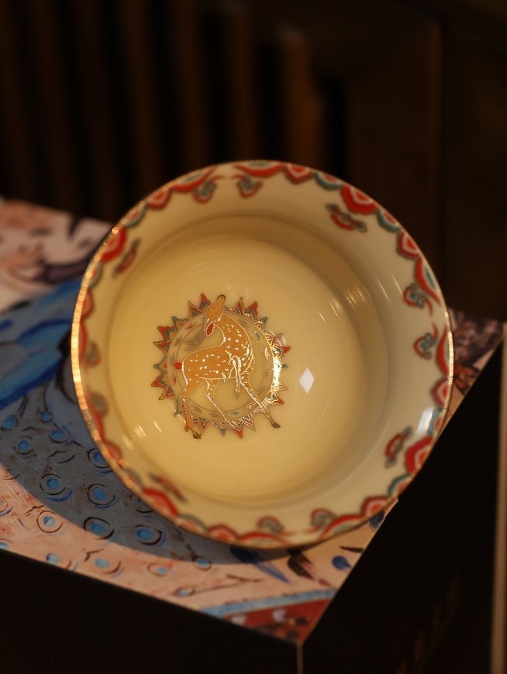 莫高窟的盛大辉煌,几万平方米壁画的流光溢彩,都凝练于这掌心的茶杯上。
