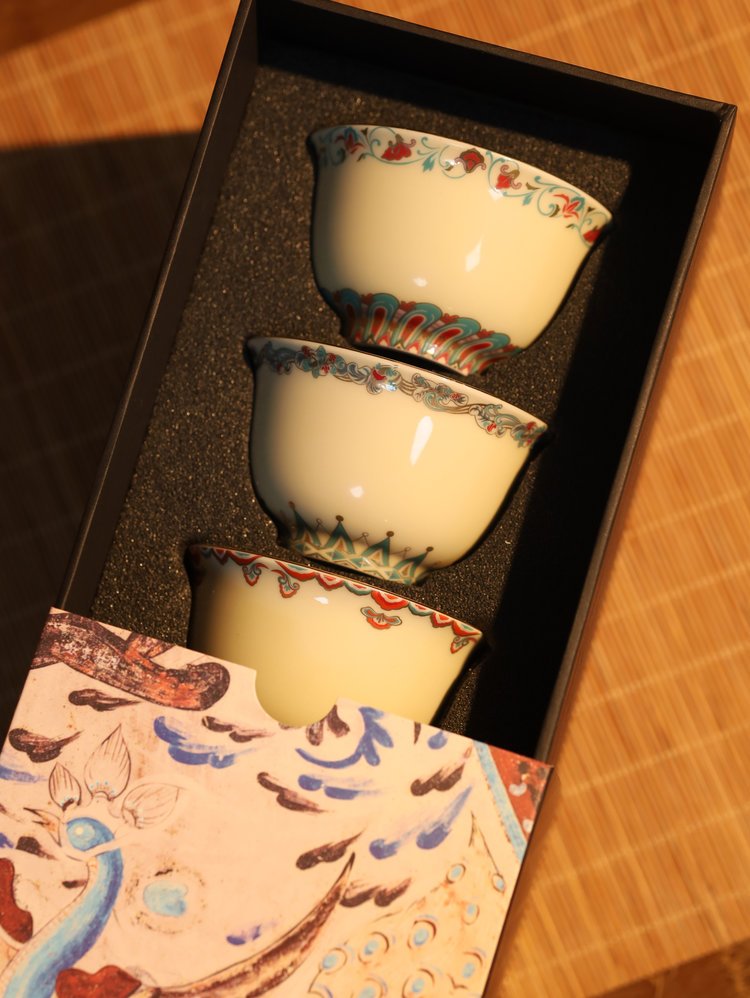 三只茶杯,承载着敦煌壁画中深邃美好的祝福,特别契合节日的温情氛围。