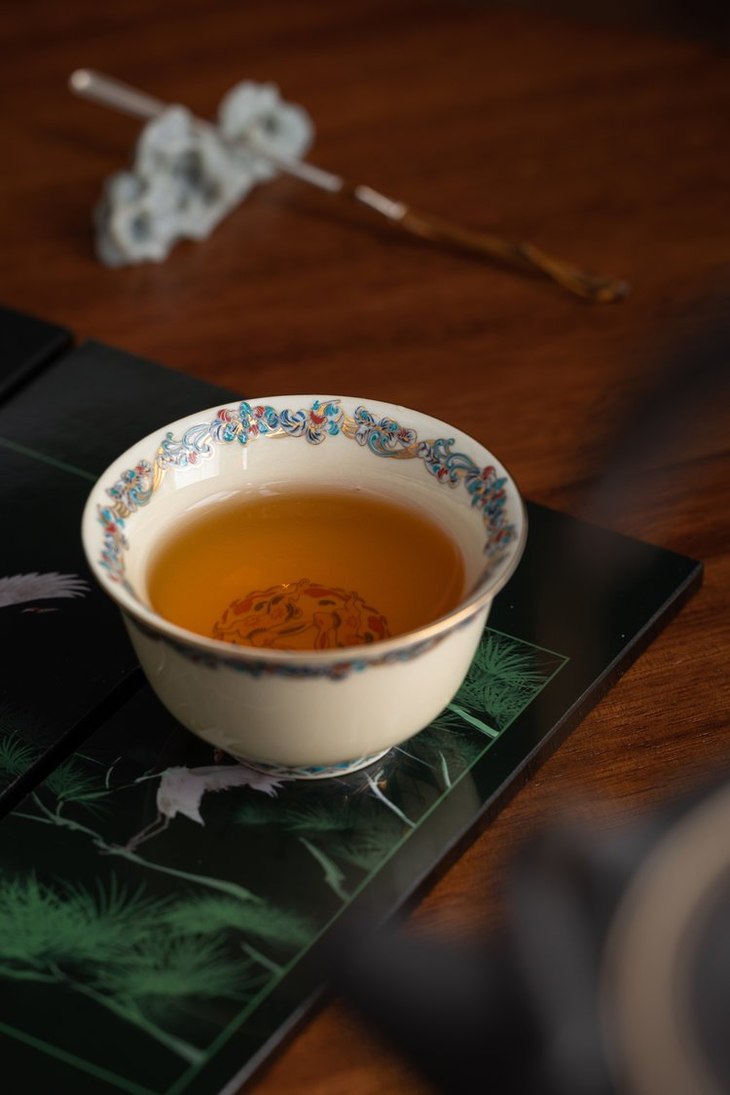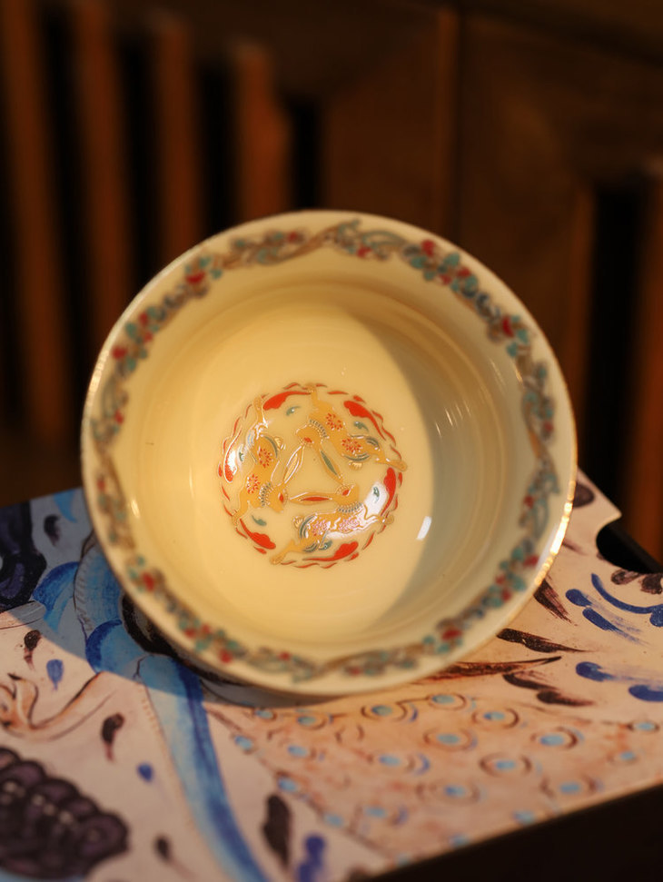 当茶汤注入,杯底的吉祥纹样仿如在光影中游动,这份独特的文化体验和匠心工艺,足以打动有挑剔品味的人。