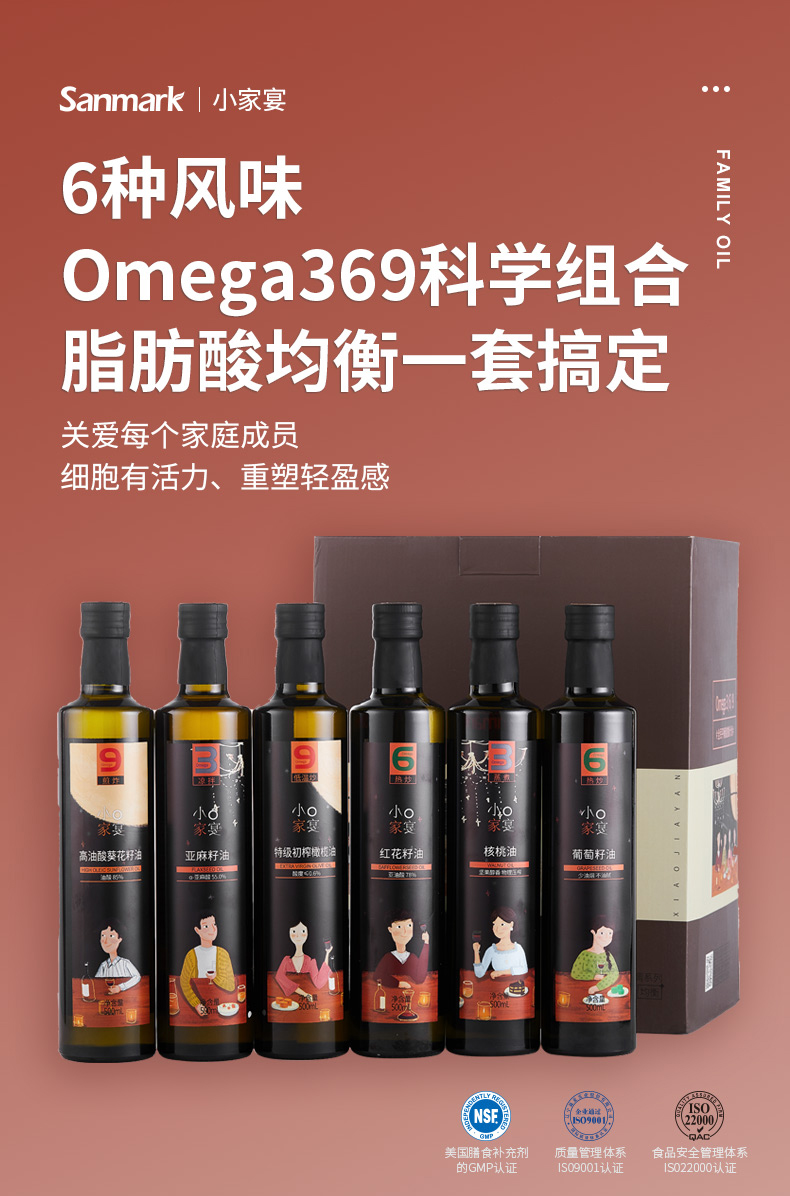 【已下架】积分换购 | 晟麦小家宴礼盒 亚麻籽油(500ml*6)[福利品]