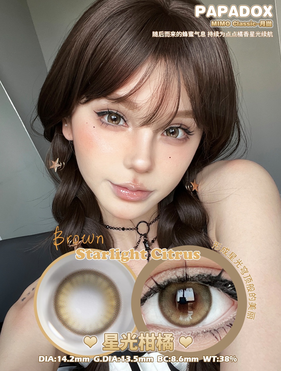 PAPADOX 星光柑橘 月抛 两片 14.2mm 参考着色 13.5mm 基弧 8.6 含水 38% 韩国进口