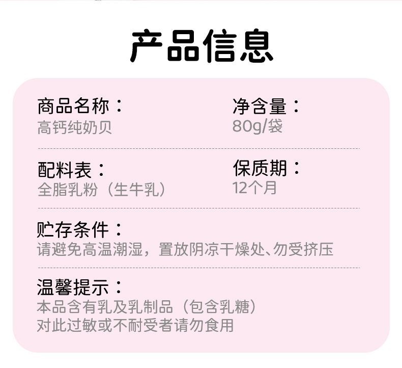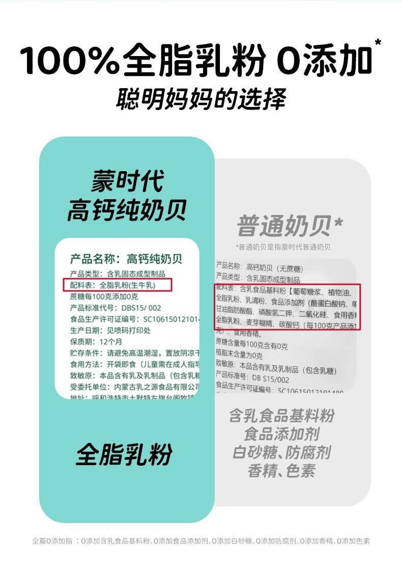 蒙时代 高钙纯奶贝牛奶片80g 内蒙古特产奶制品奶酪零食100%全脂乳粉