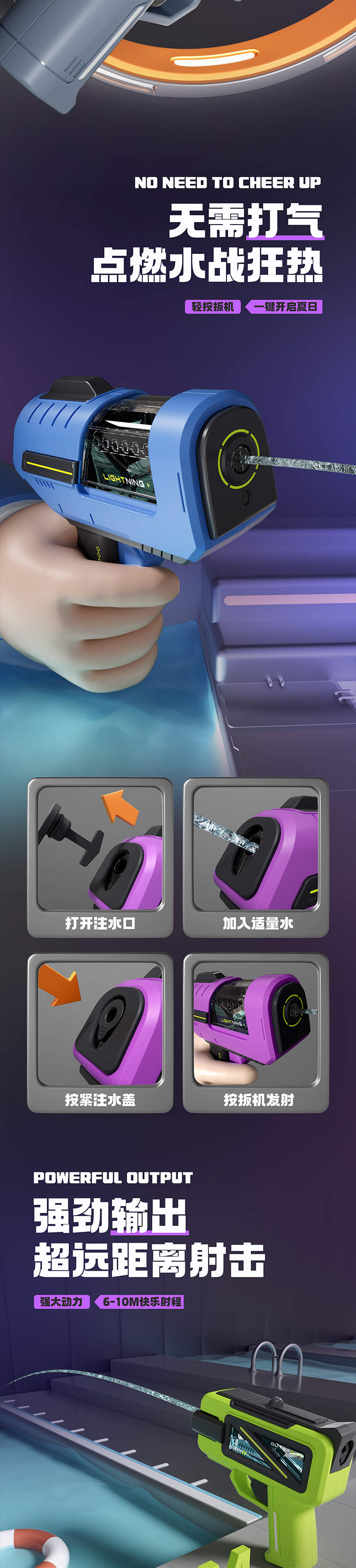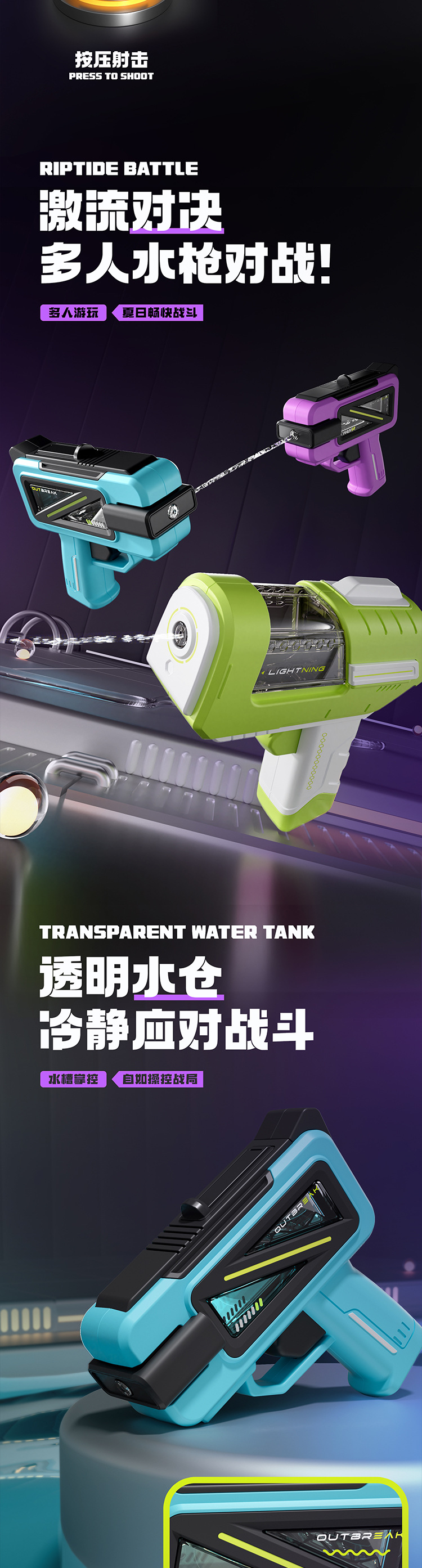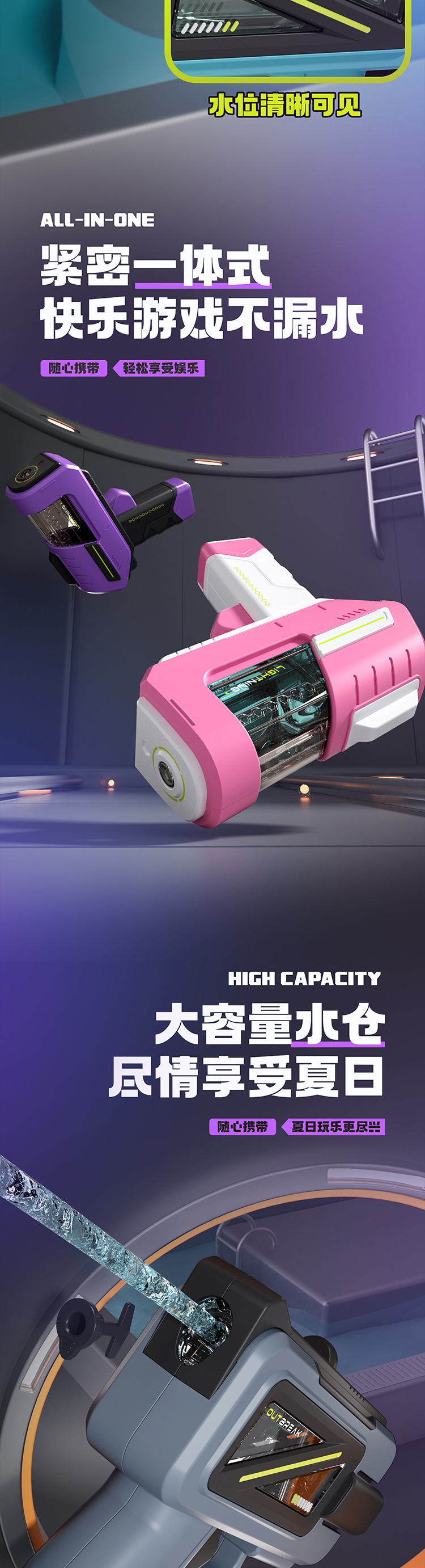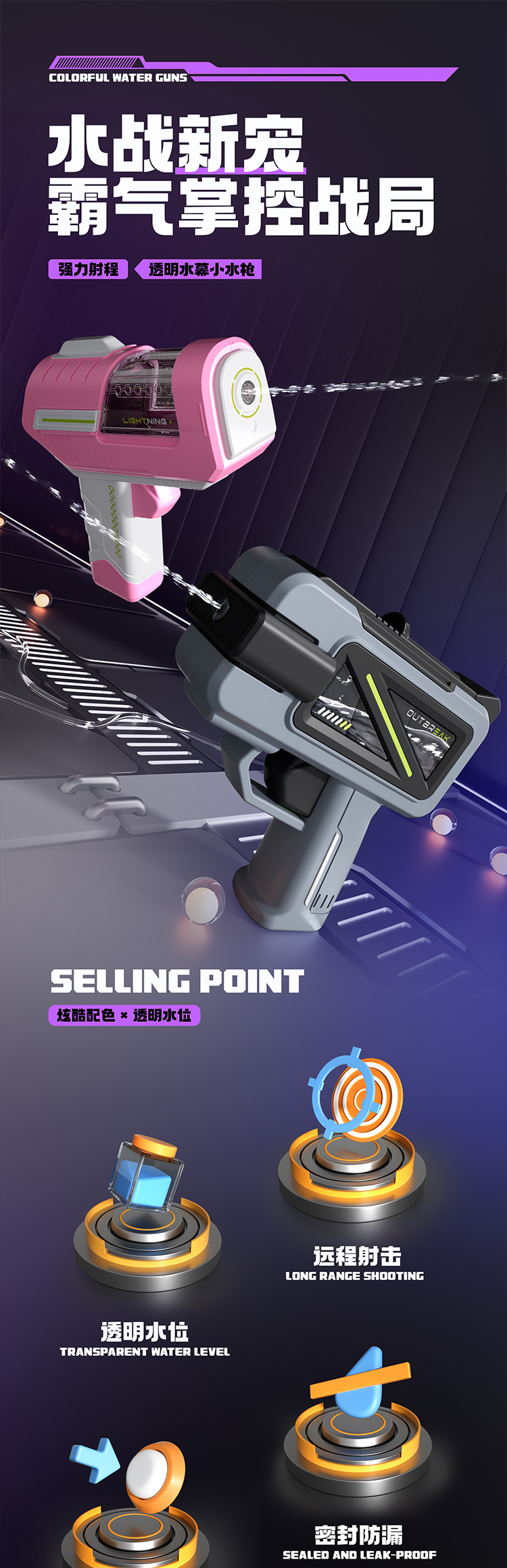夏日新品科技水枪潮玩高压连发大容量透明水仓呲水枪戏水儿童玩具