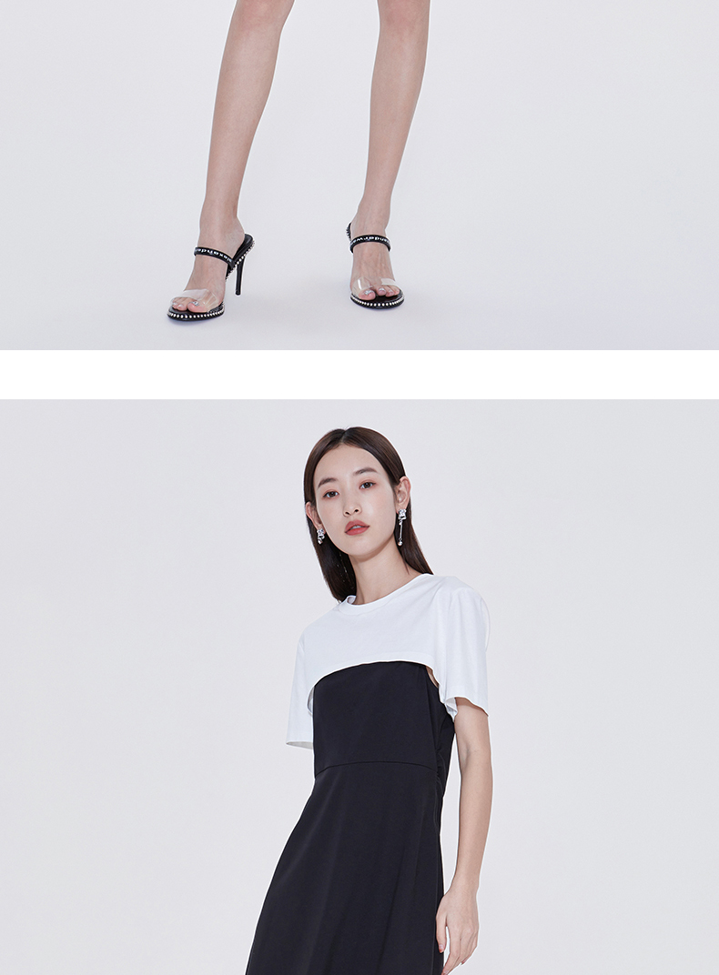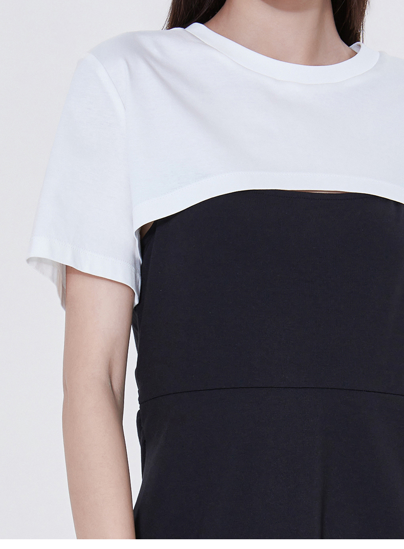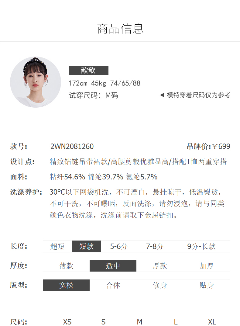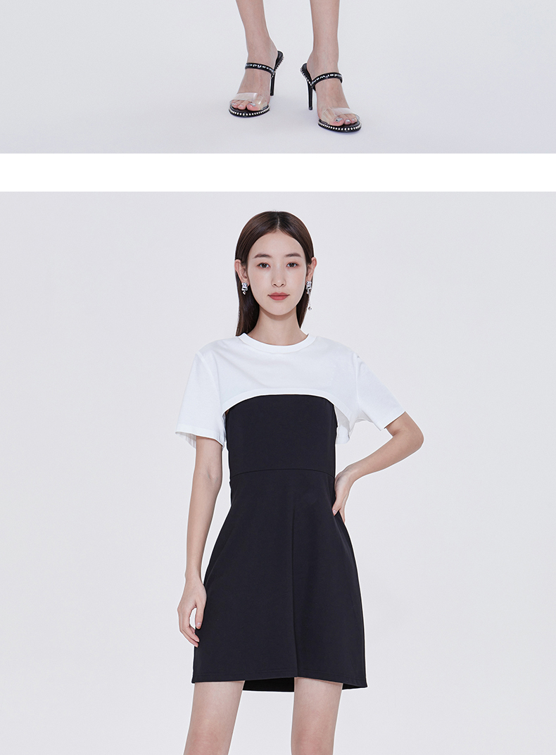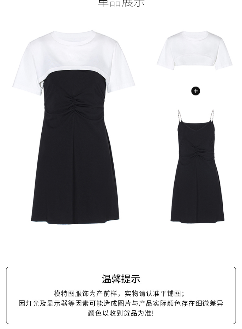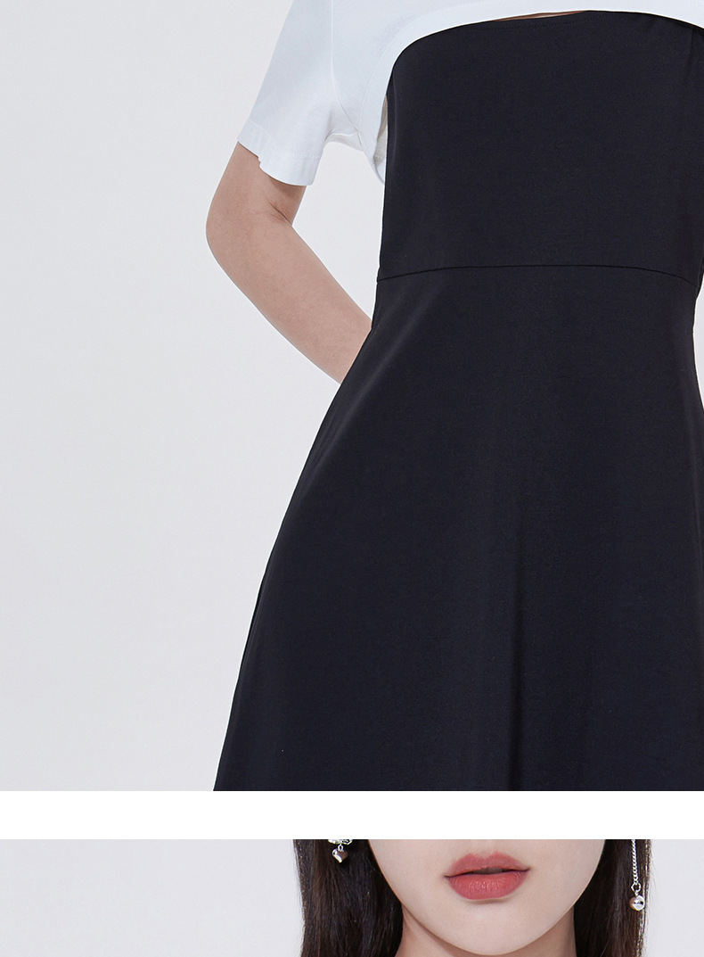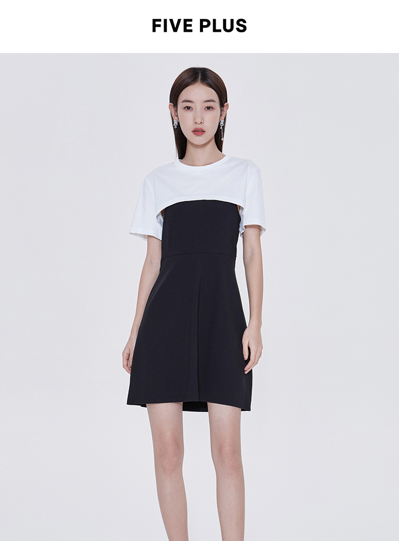 FIVE PLUS2022新款女夏装气质高腰吊带连衣裙女钻链短款裙子配T恤 2WN2081260