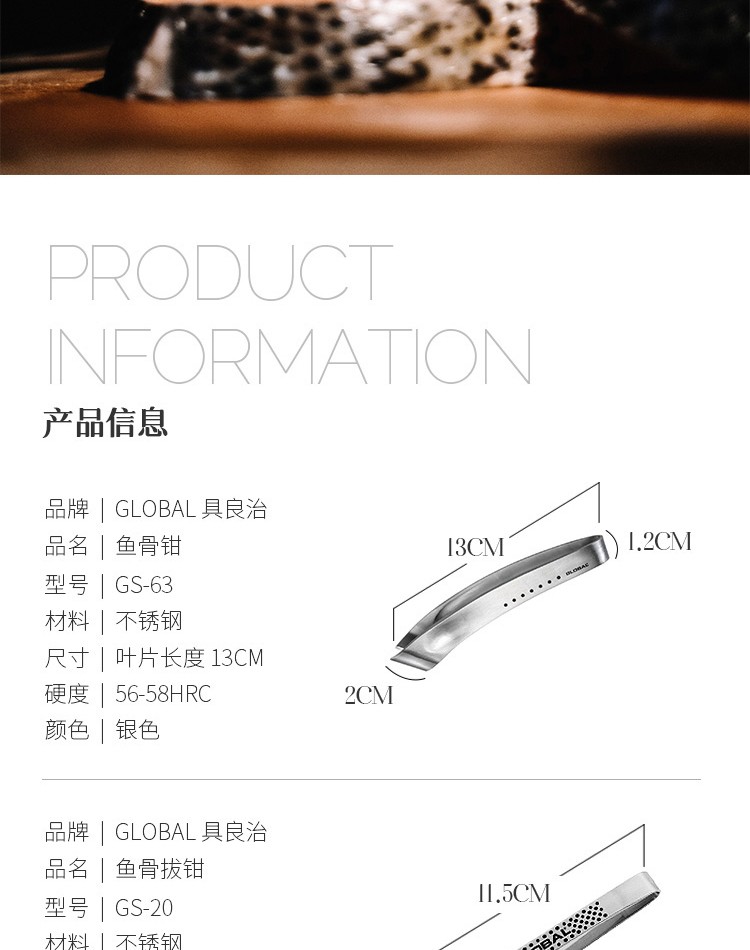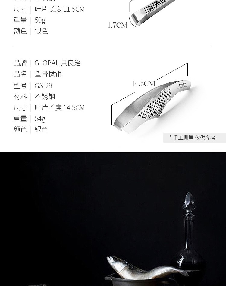 具良治GLOBAL鱼刺夹鱼骨夹钳猪毛鸡毛除毛镊子