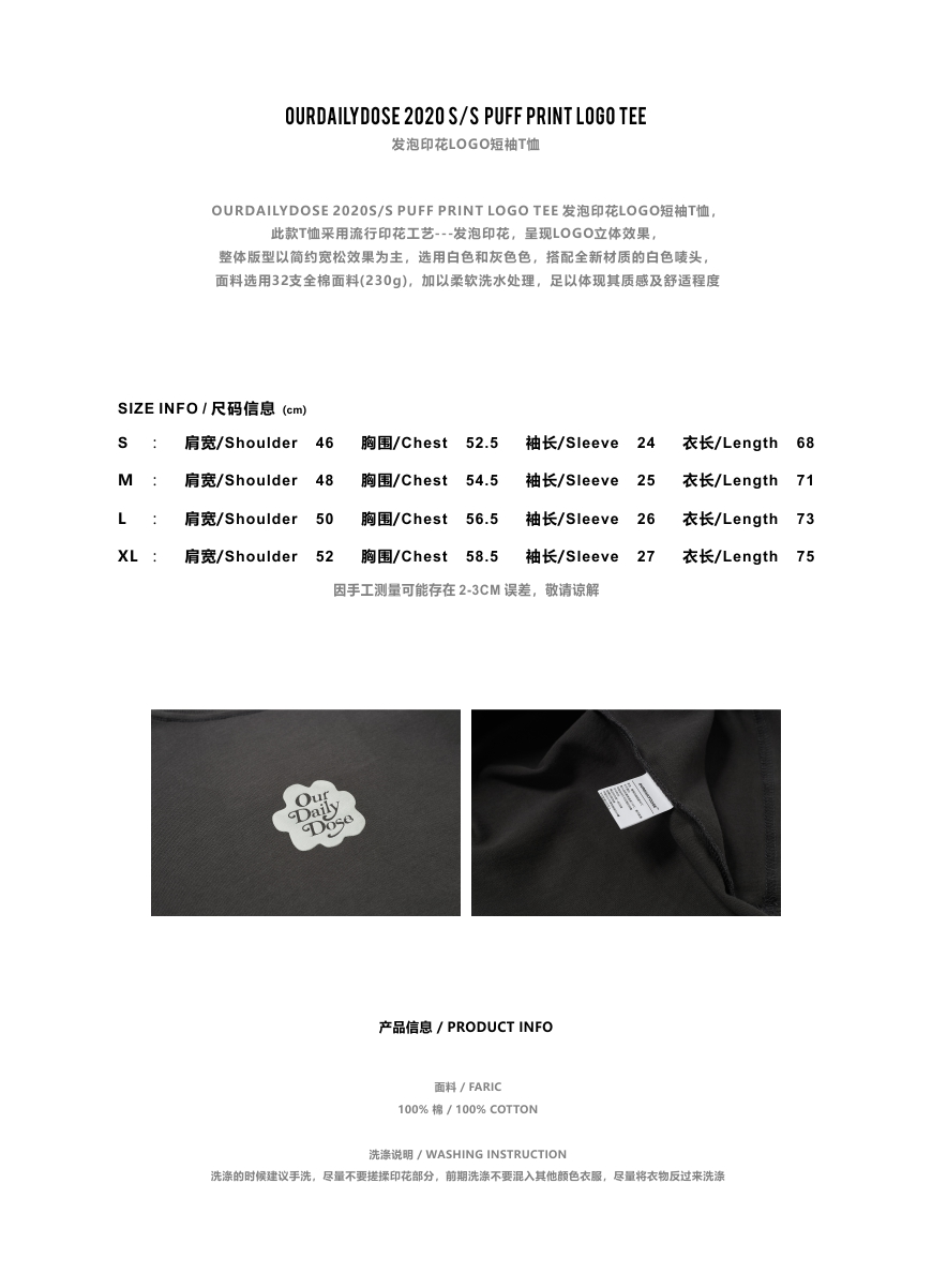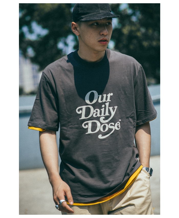 OURDAILYDOSE 原创潮牌发泡印花纯色宽松圆领休闲水洗短袖T恤男潮